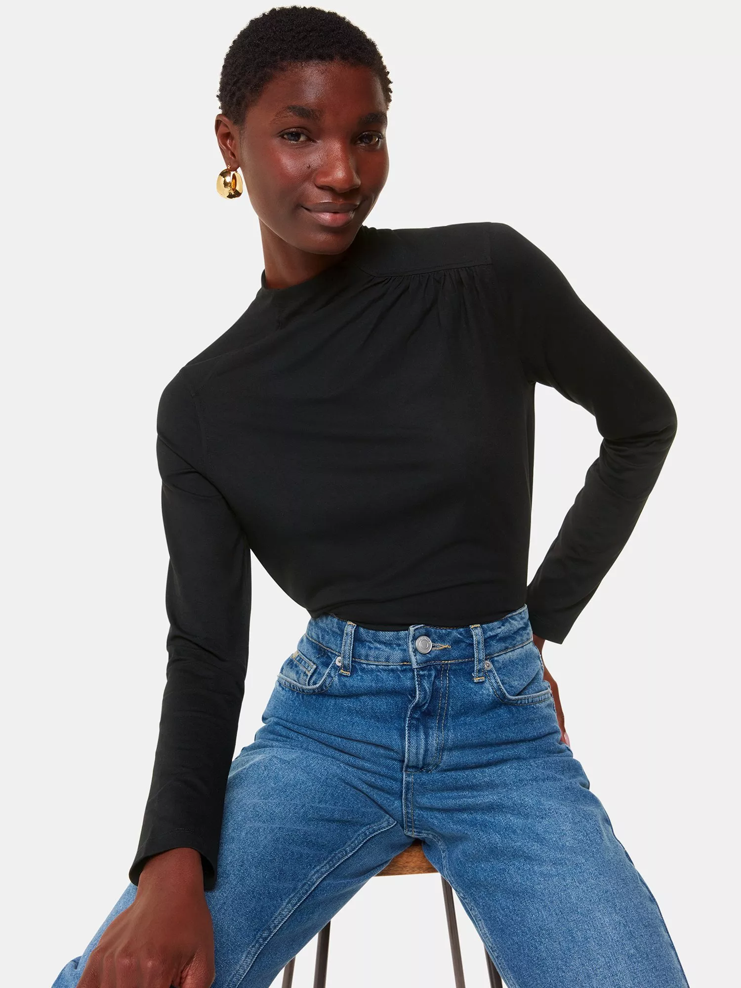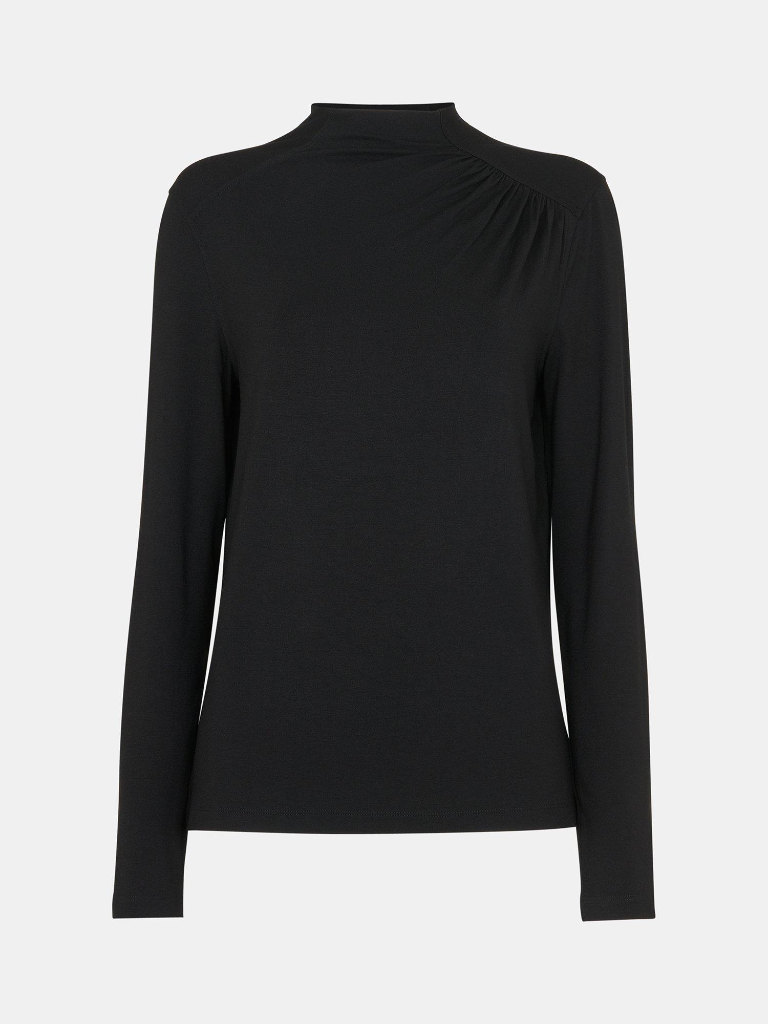 A lightweight staple, this ruched front jersey top from Whistles is made with a high neckline and long sleeves.