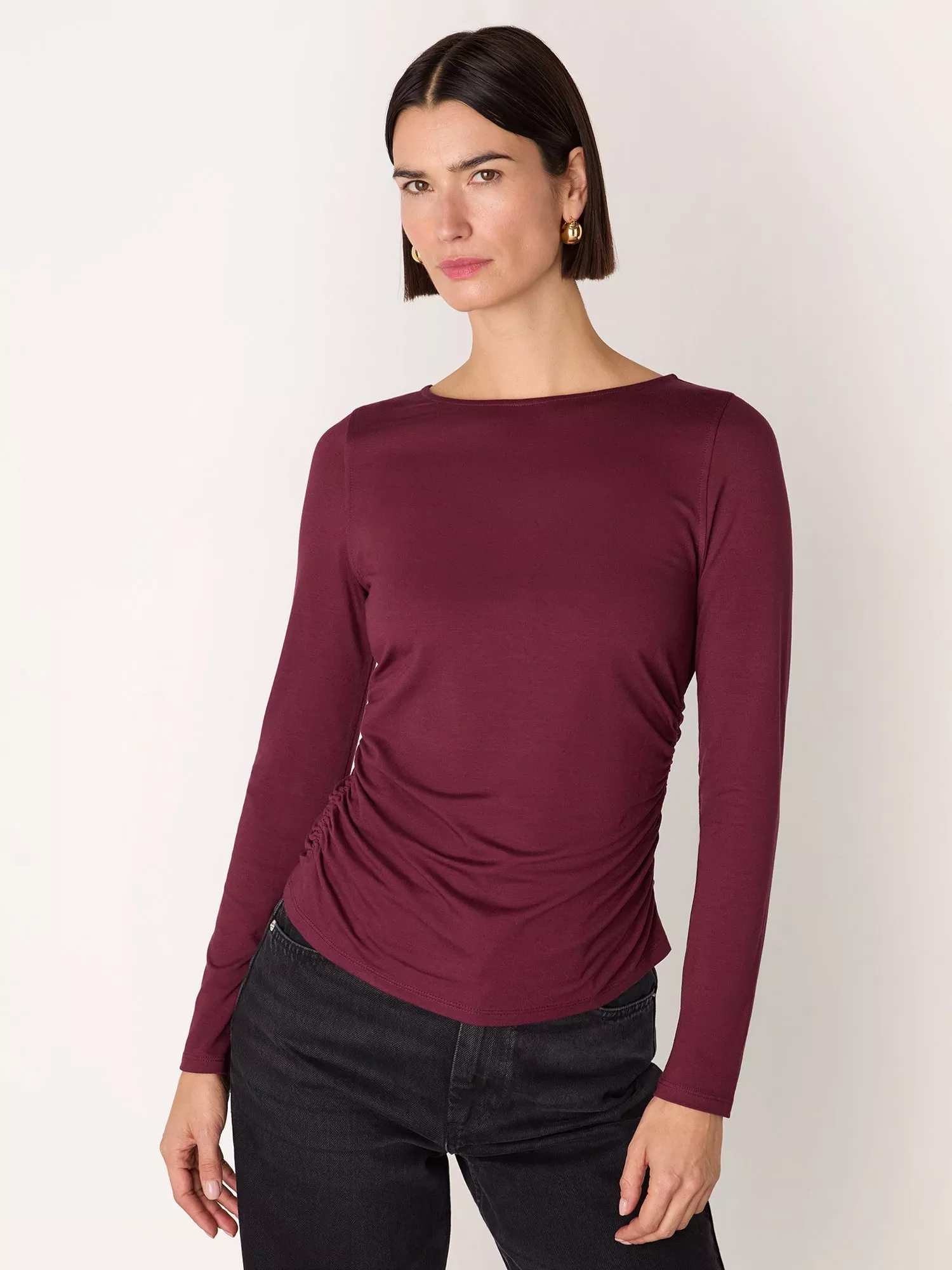 An essential jersey top by Whistles, made from a soft viscose blend. With a boat neck and long sleeves, it comes in a versatile, plain design. Perfectly polished for daily wear.