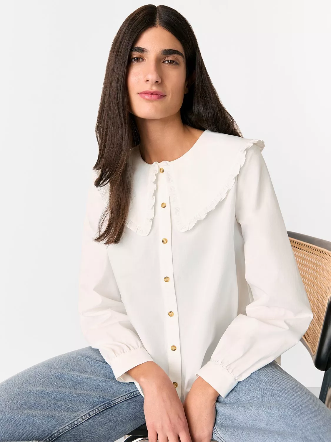 Detailed with a ruffle collar, this shirt from Whistles is made from soft and breathable cotton with long sleeves. Plain for easy mixing and matching, it's great for both smart and casual occasions.