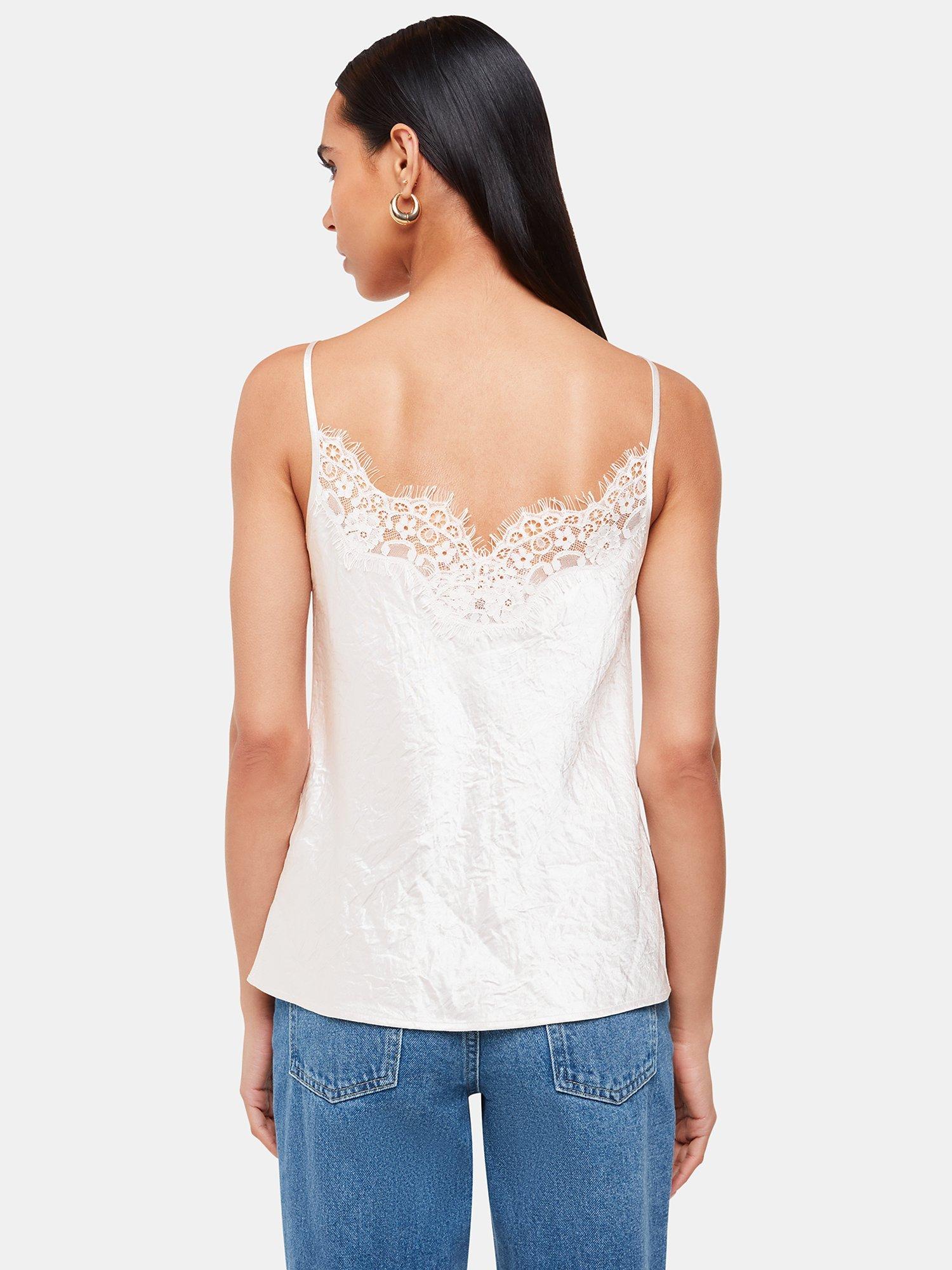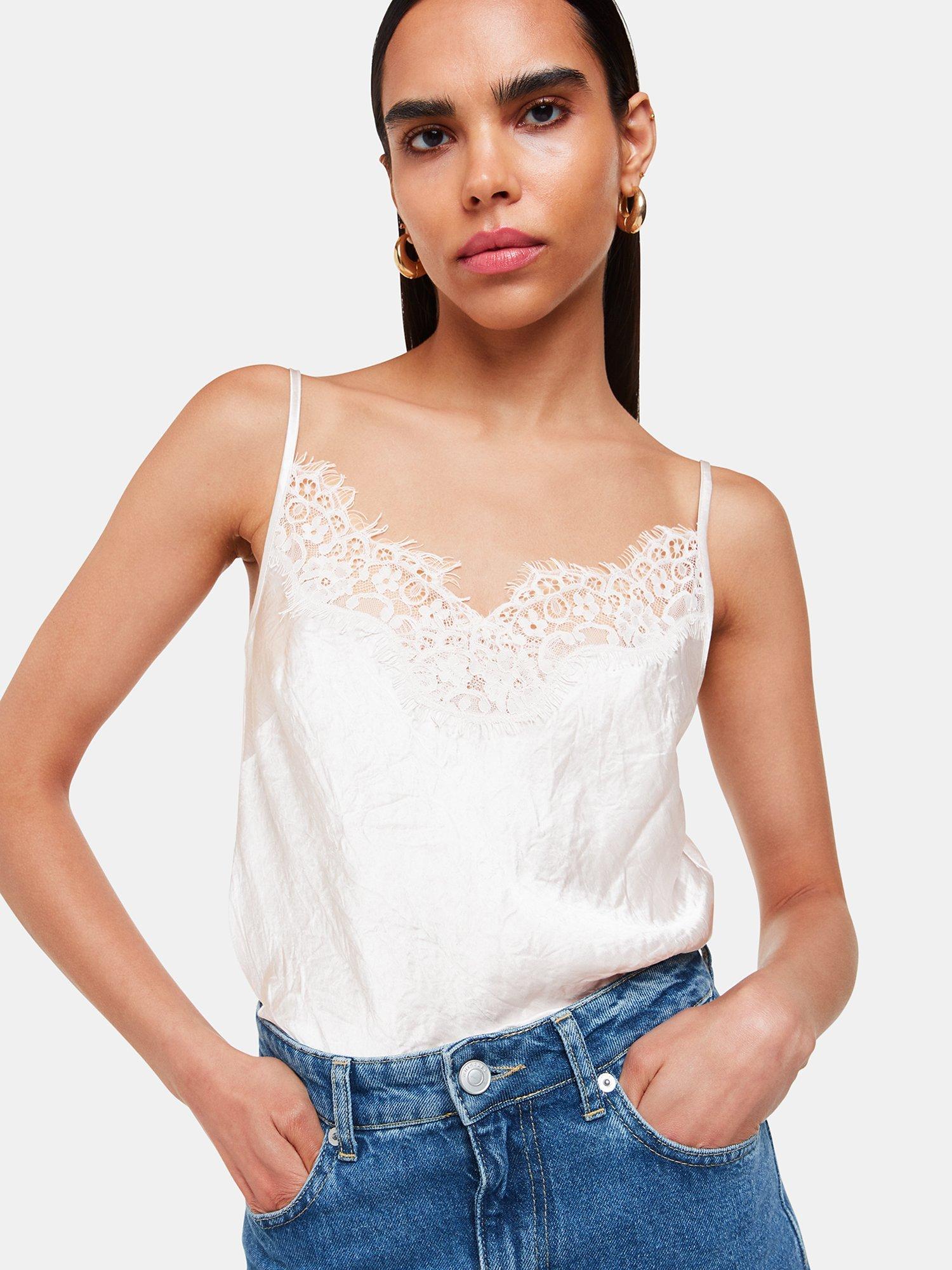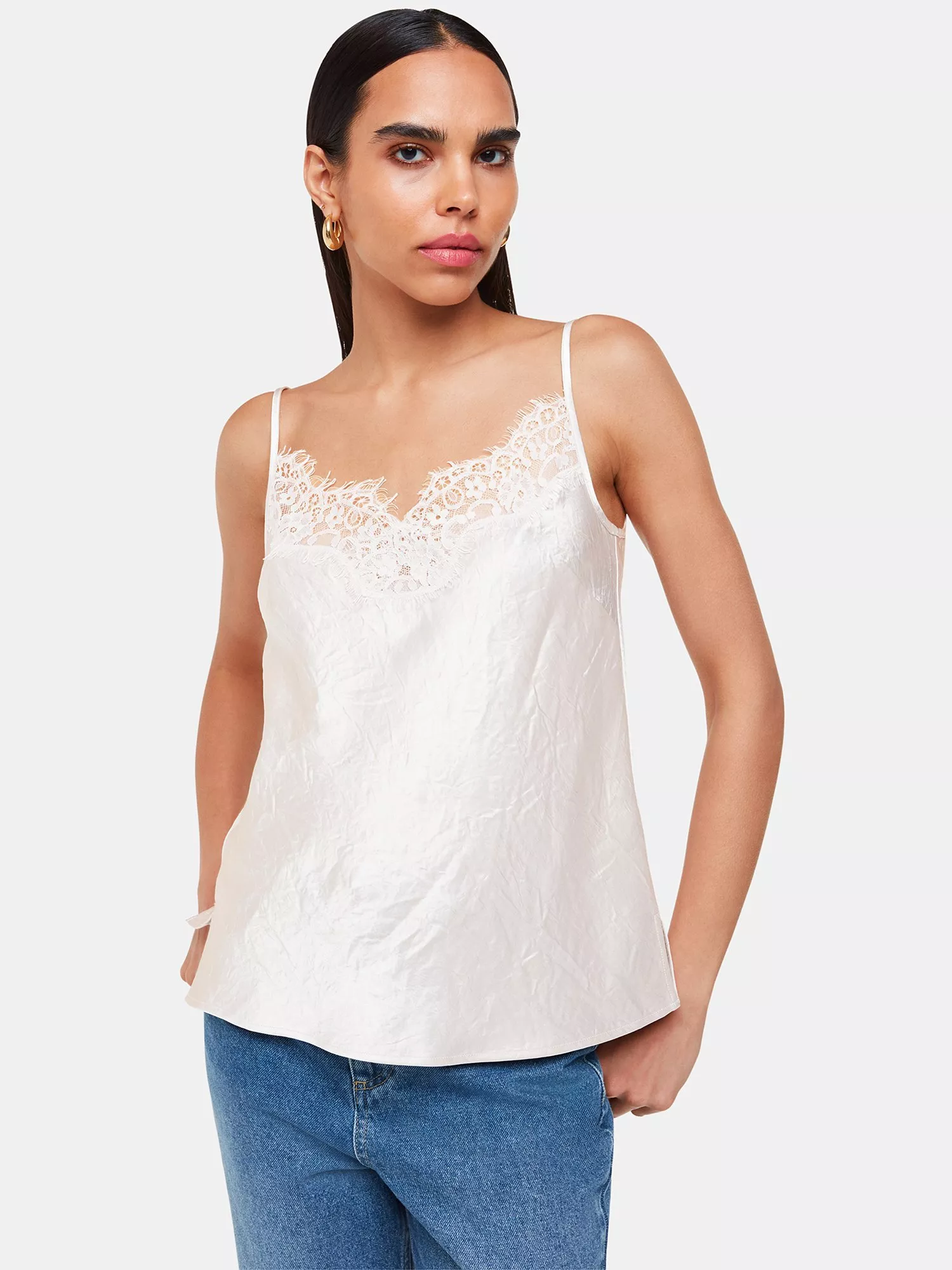 Simple and versatile in nature, this lace trim cami by Whistles is made from satin. Try glamming it up with the matching skirt when cocktail hour comes around.