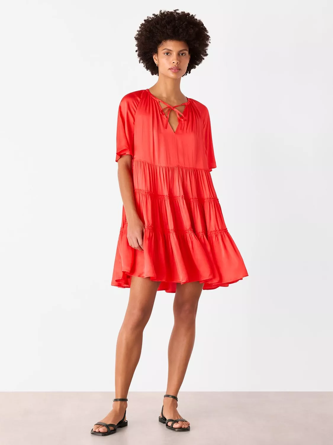 In a flirty flared shape, this mini dress from Whistles is made from whisper-weight viscose. A versatile choice thanks to the tie neckline and short sleeves, this style is a celebration of minimalism.