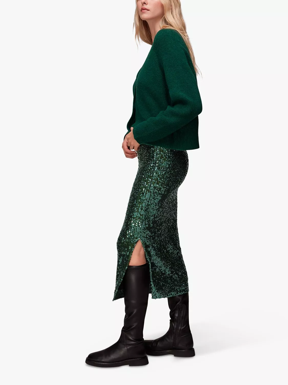 In a quietly elegant pencil shape that flatters your form, this calf-grazing skirt by Whistles is infused with an extra dose of opulence with its glittering embellishment.