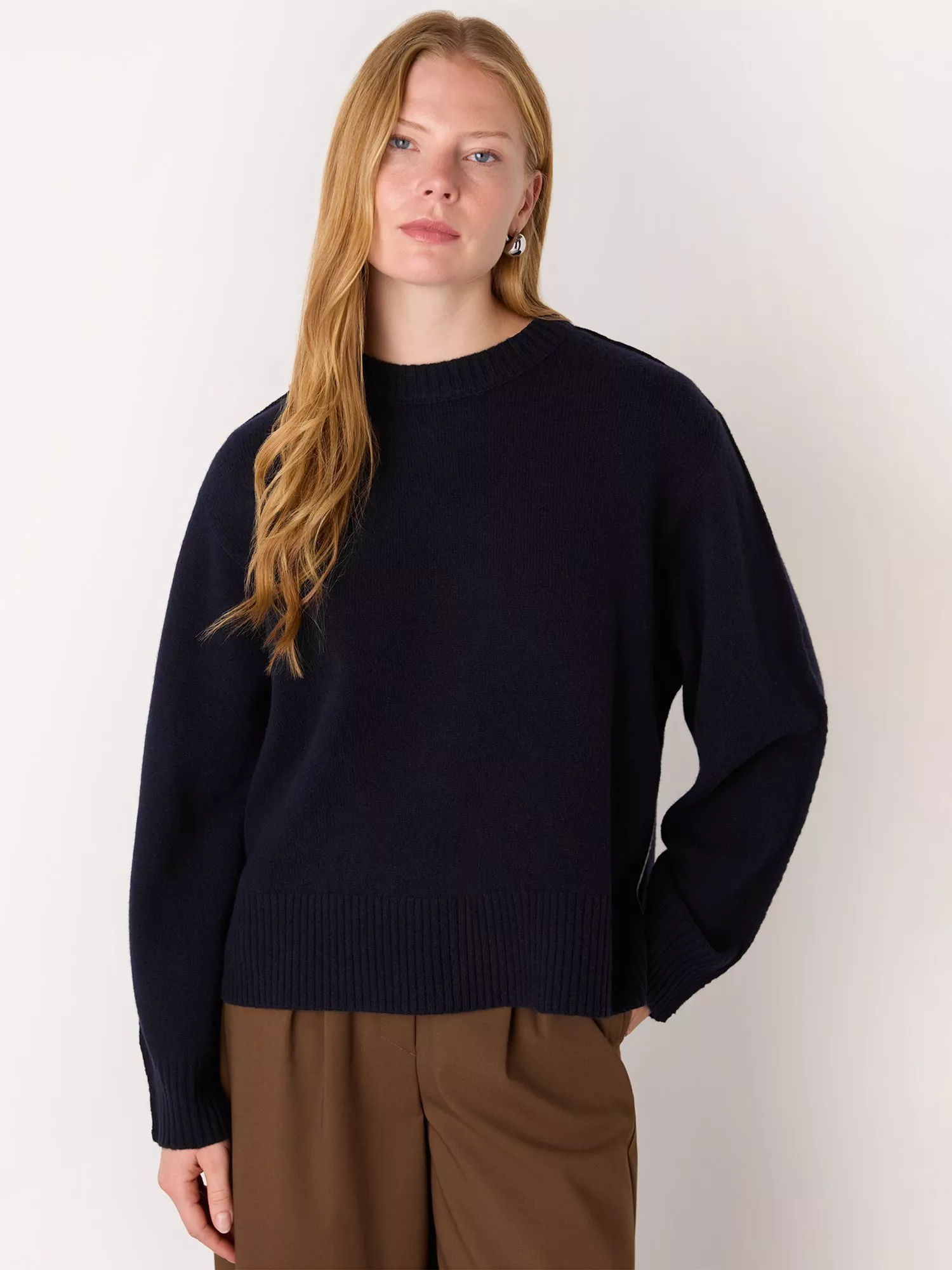 This side stripe jumper keeps you comfortable and confident with its soft wool and medium weight. Warmth and style for work or weekends, the long sleeves and round neck make it easy to layer.