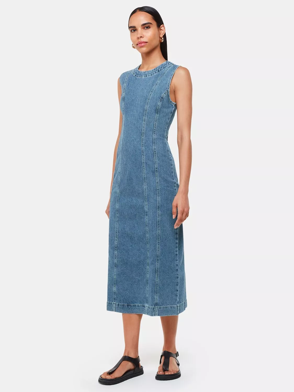 A sleeveless midi dress from Whistles, crafted from denim with a round neck. Wear alone or layer over tees and jumpers depending on the season.