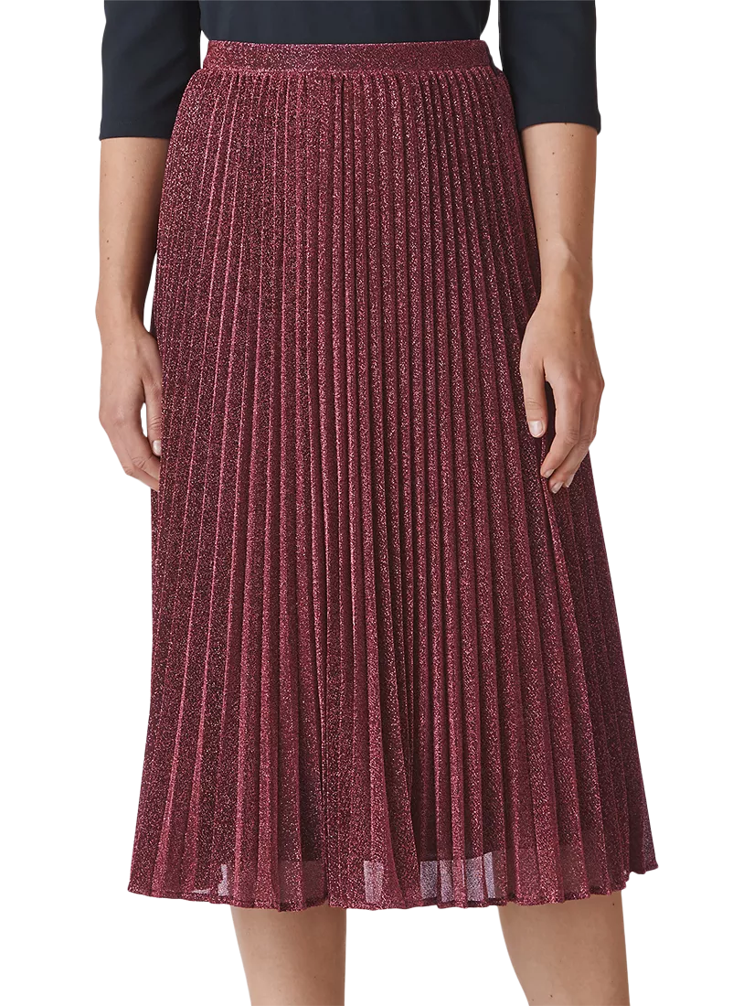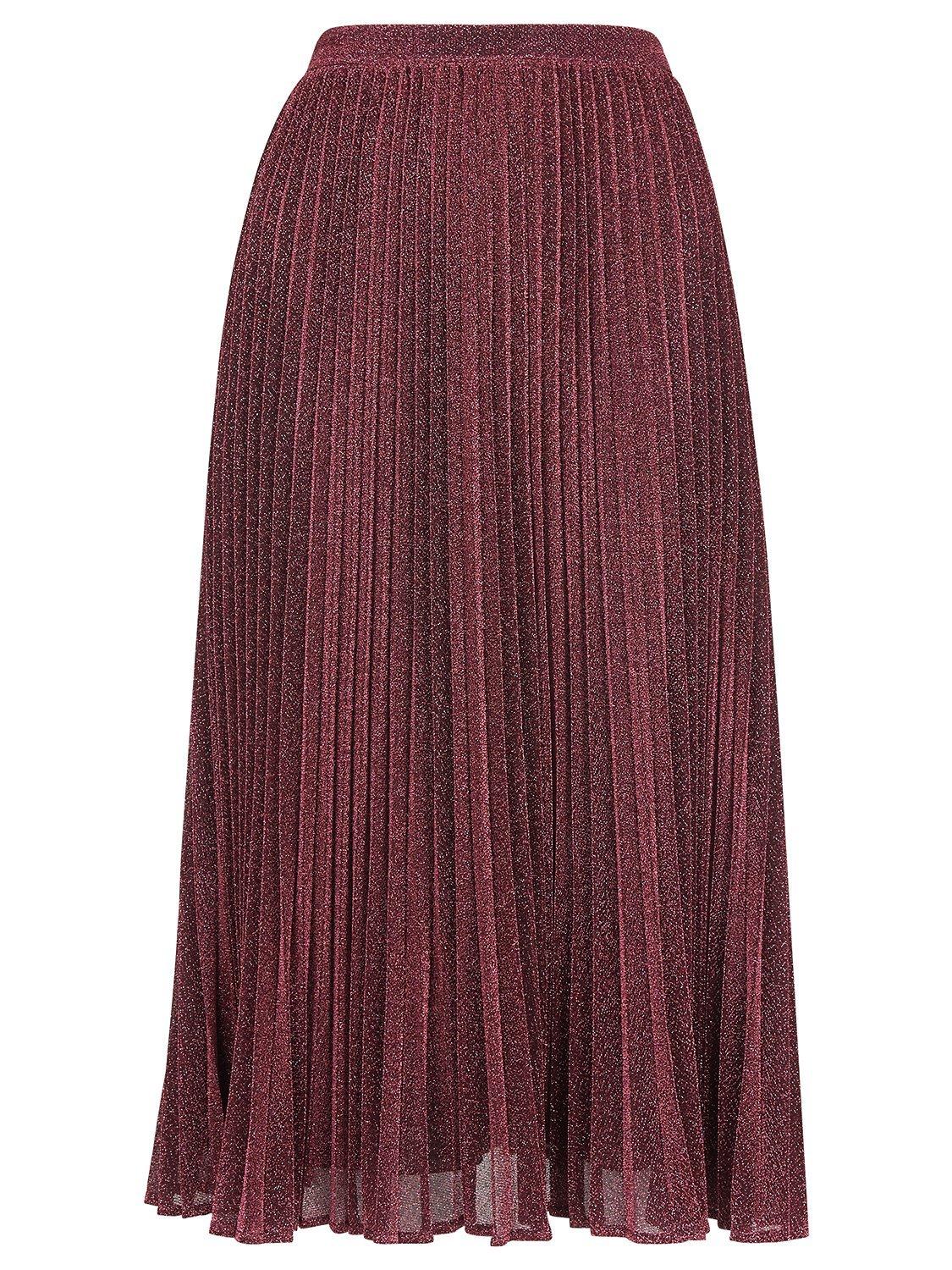 Falling to a flattering midi length, the skirt falls in neat shimmering pleats from its defined high waistband.