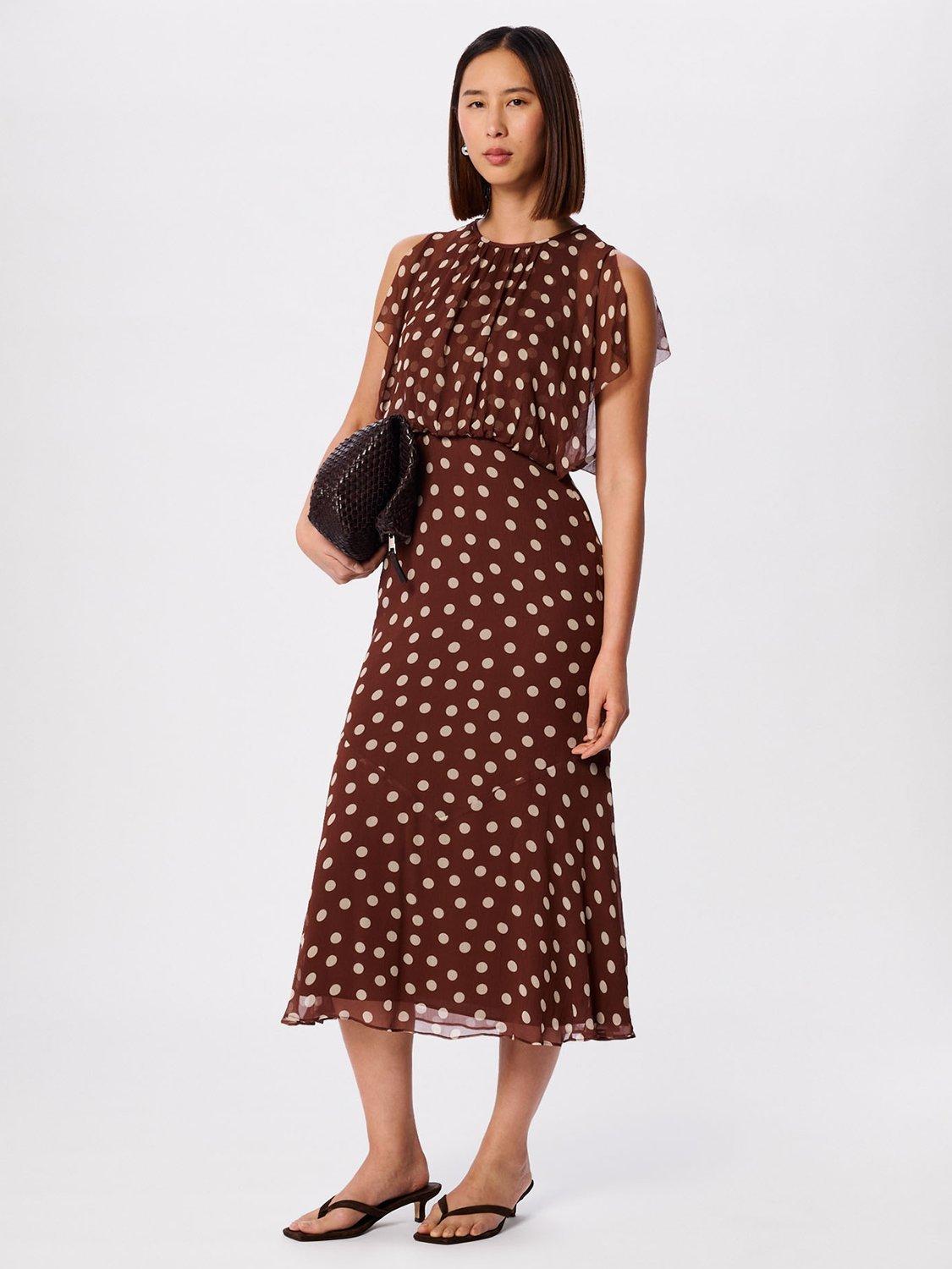 This midi dress features playful polka dots, a comfortable crew neck and split short sleeves, ideal for day events and special occasions. Its relaxed, A-line cut ensures you feel at ease.