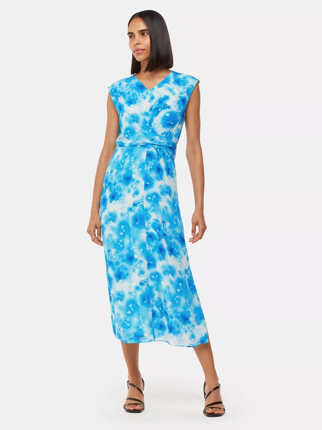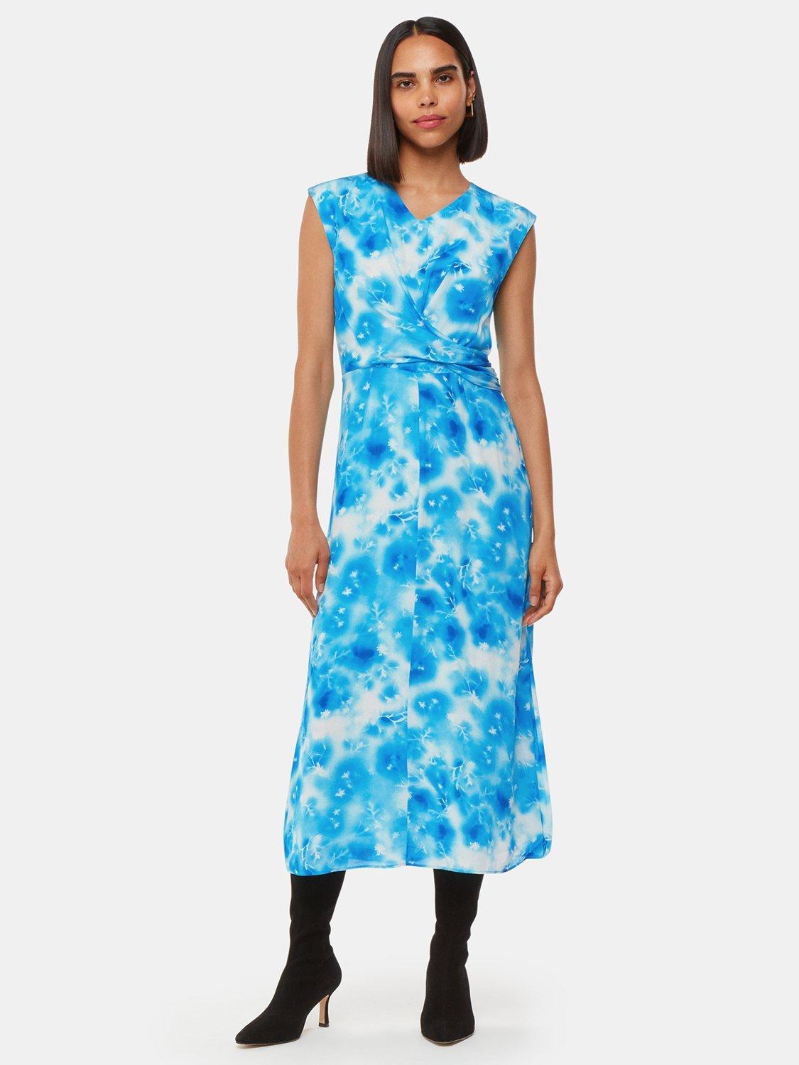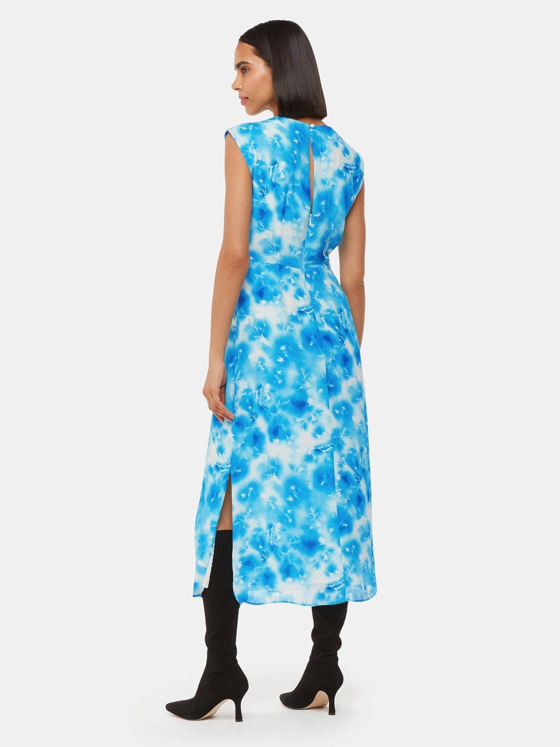 Flowing across the body in a relaxed sheath style, this midi dress from Whistles is made from breezy viscose. With a fuss-free but smart v-neckline and cap sleeves, this style showcases an intriguing, abstract sprayed flowers print.
