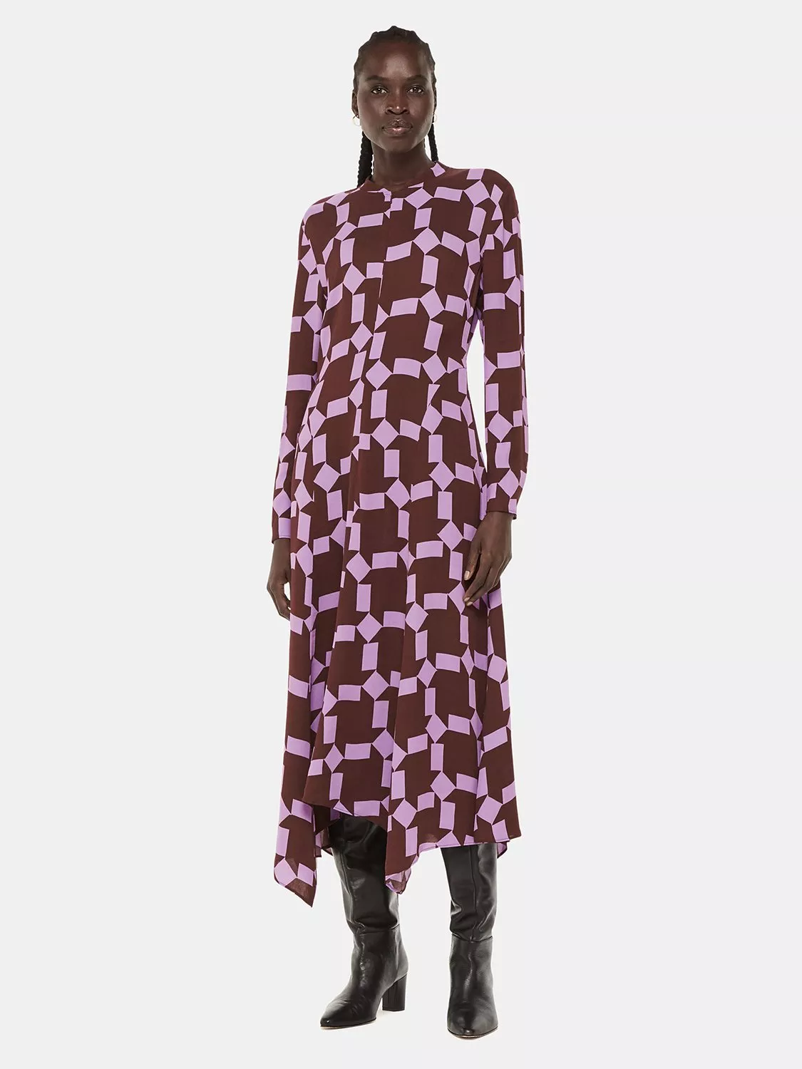 In a tried-and-true shape with a hanky hem, this midi dress from Whistles is crafted from an airy viscose fabric. Featuring a crew neckline and full-length sleeves, this style is decked out in checks.