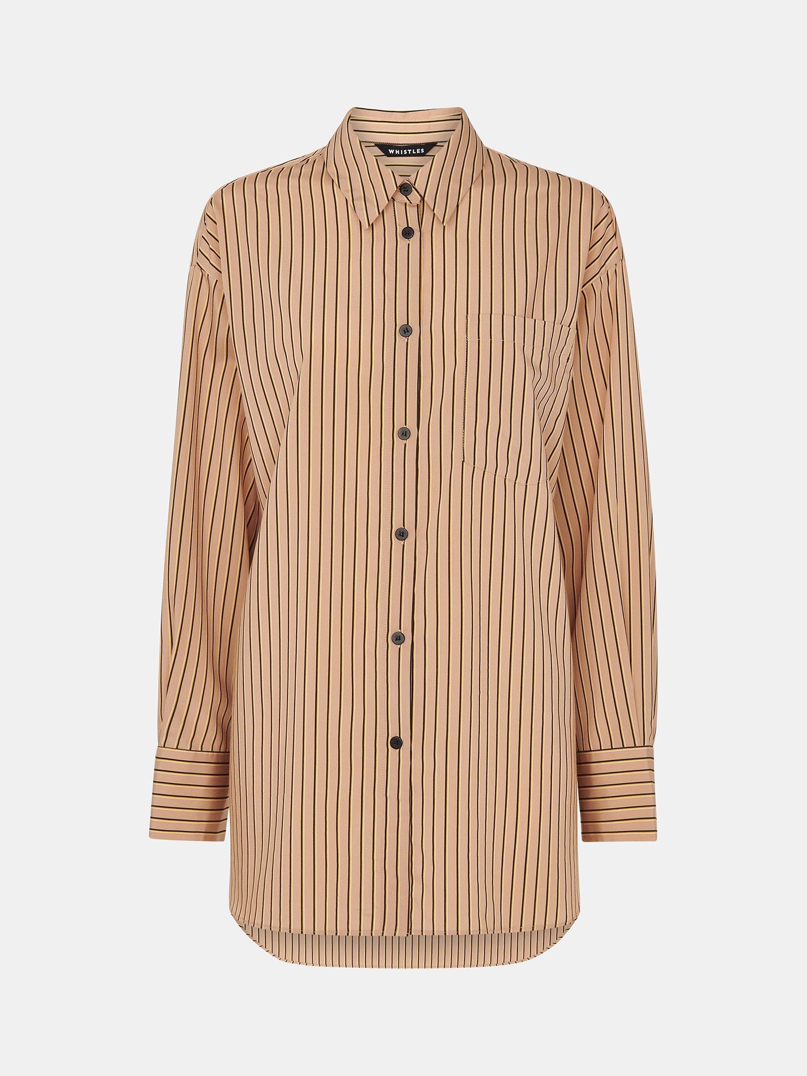 Updating your collection, this shirt by Whistles flatters the figure with its striped pattern.