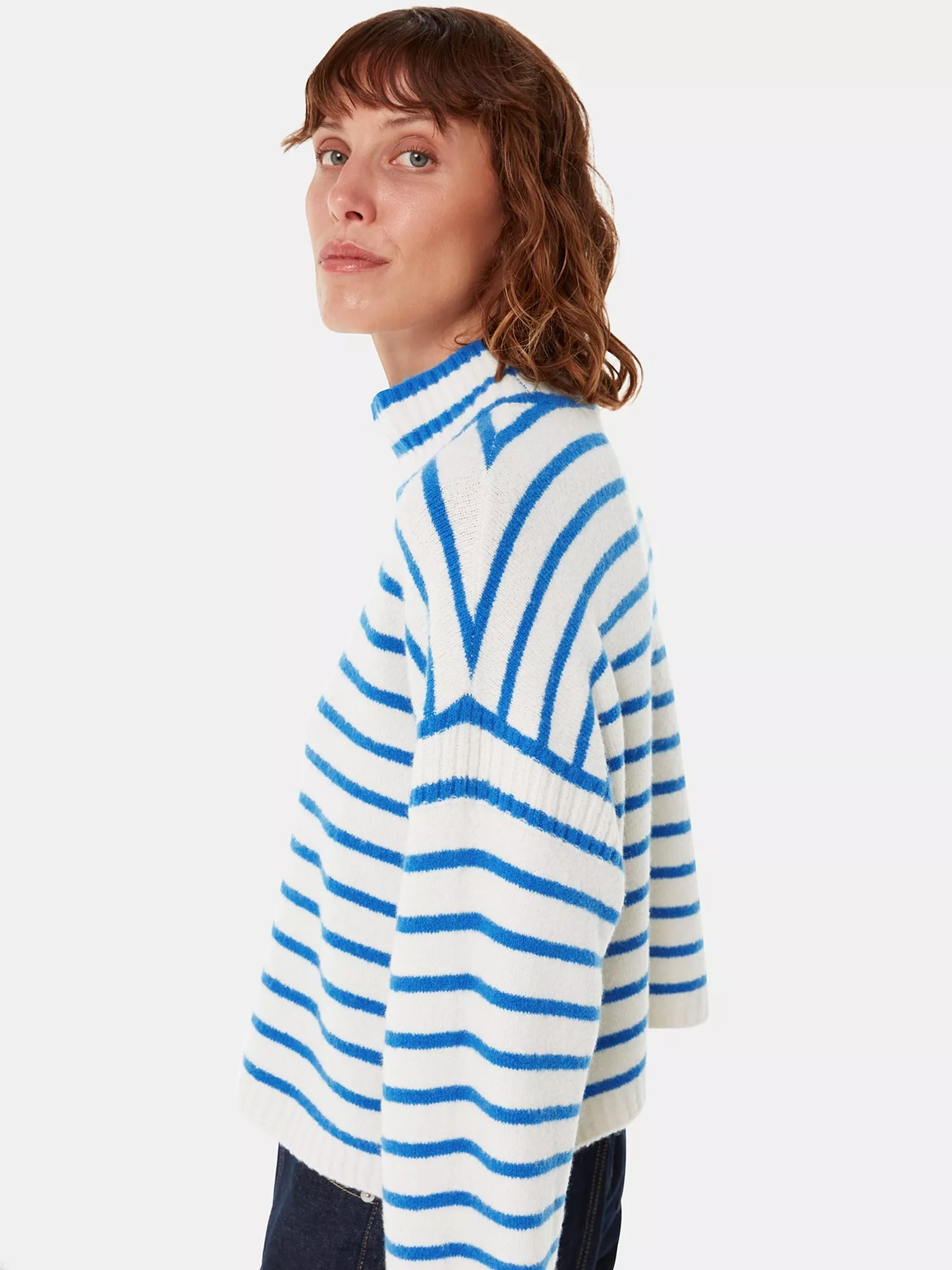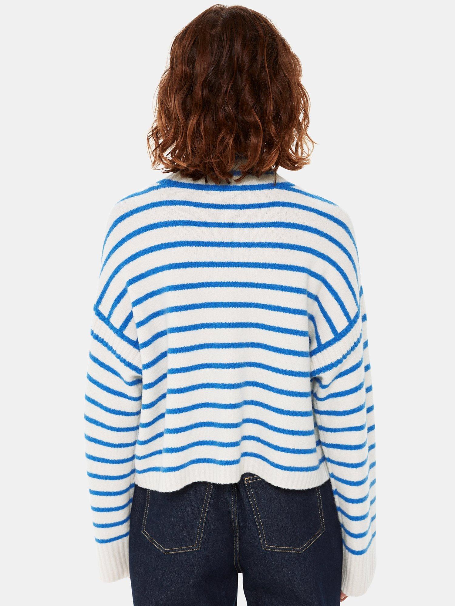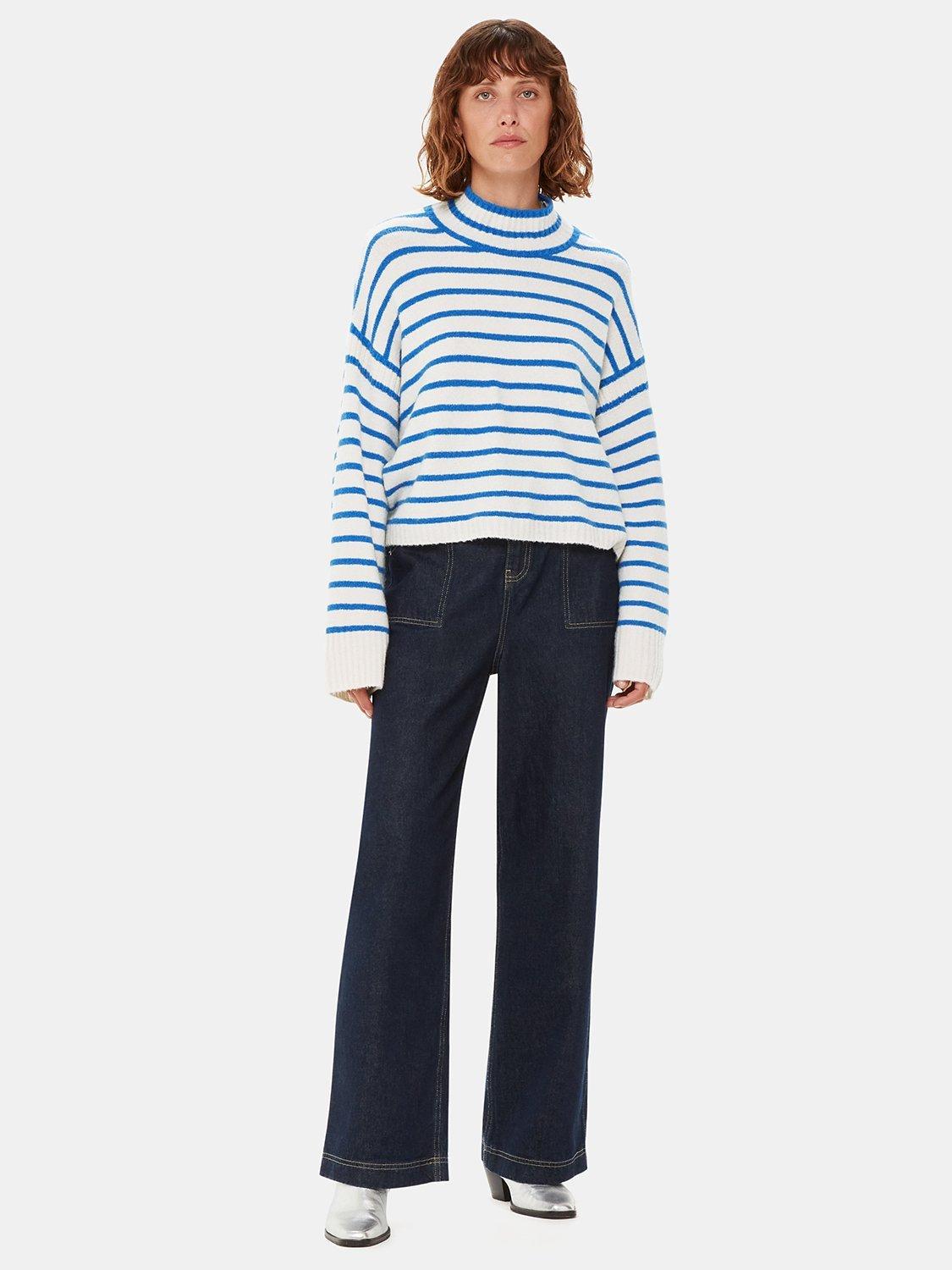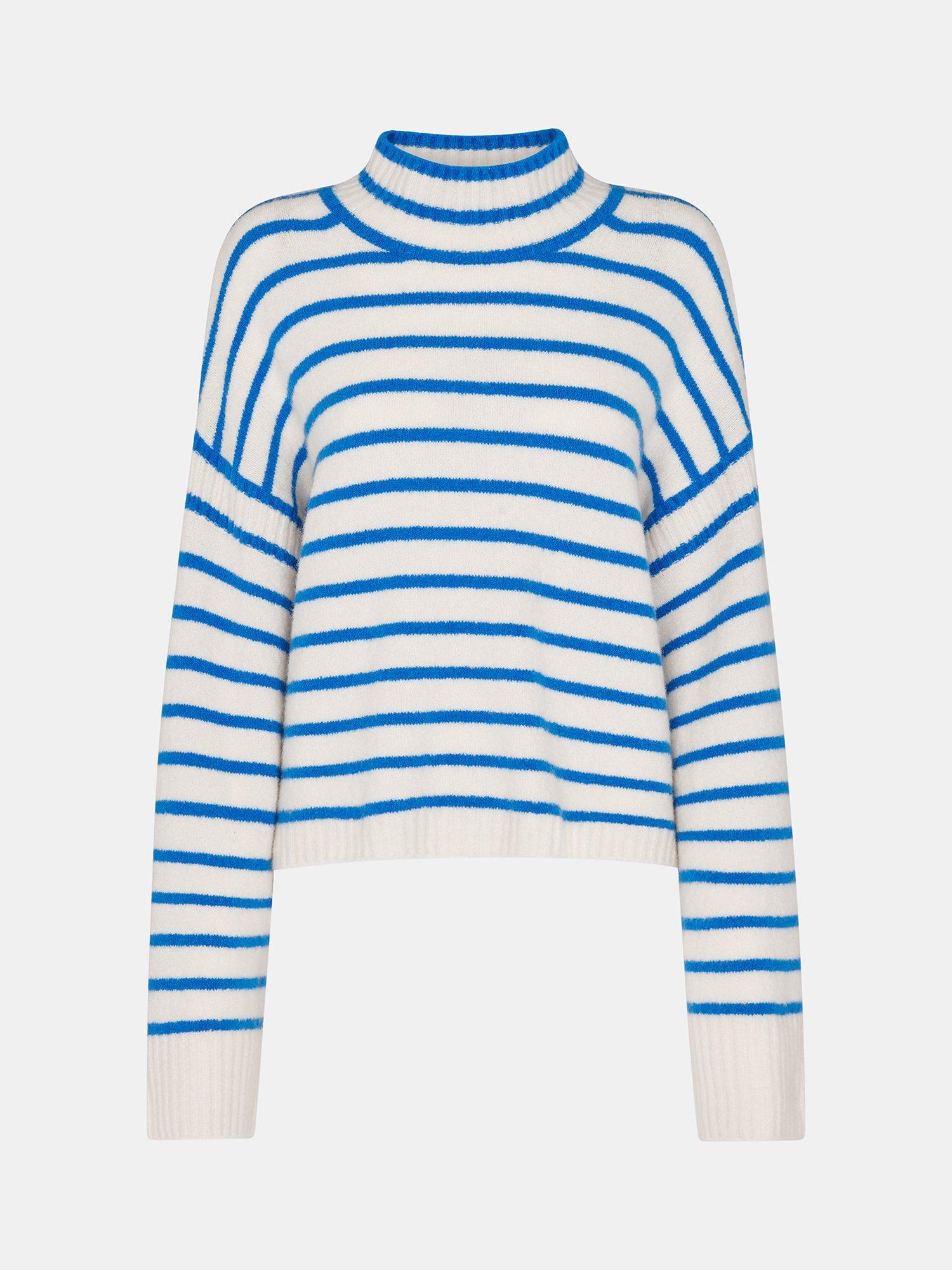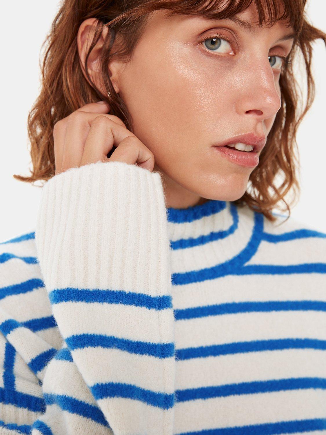Designed in an easy neutral shade and punctuated with stripes, this knit feels like a wardrobe classic. Crafted from a wool blend, it also comes with a cosy funnel neck for colder days and looks on-trend when paired with wide leg denim.