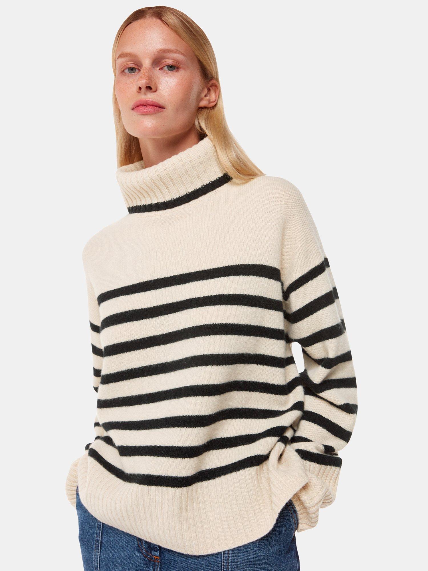 Keeping you warm with its cosy roll neck, this stripe jumper from Whistles is made from pure wool for a premium feel.