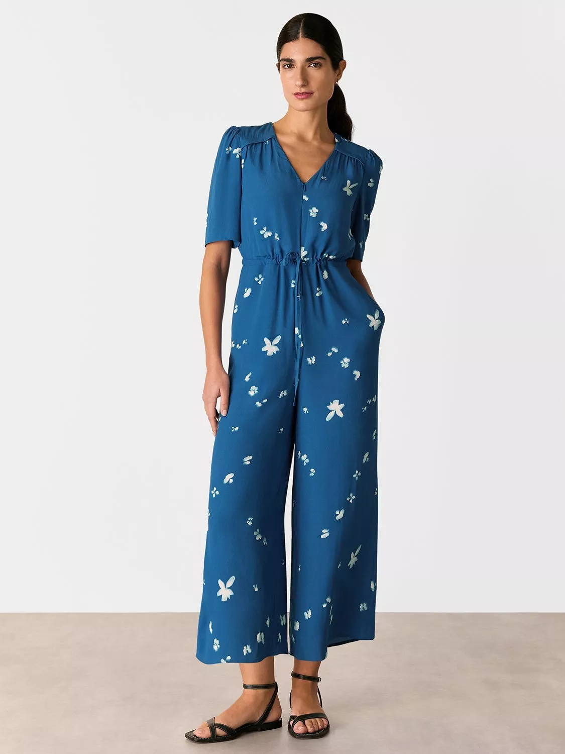 Framed with a flattering v-neck and short sleeves, this jumpsuit by Whistles is made from smooth viscose with cropped wide legs.