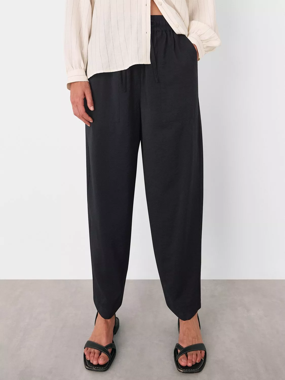 Tapered shape trousers from Whistles. This style is cut to sit mid rise with a drawstring waist and hems that fall to a regular length.