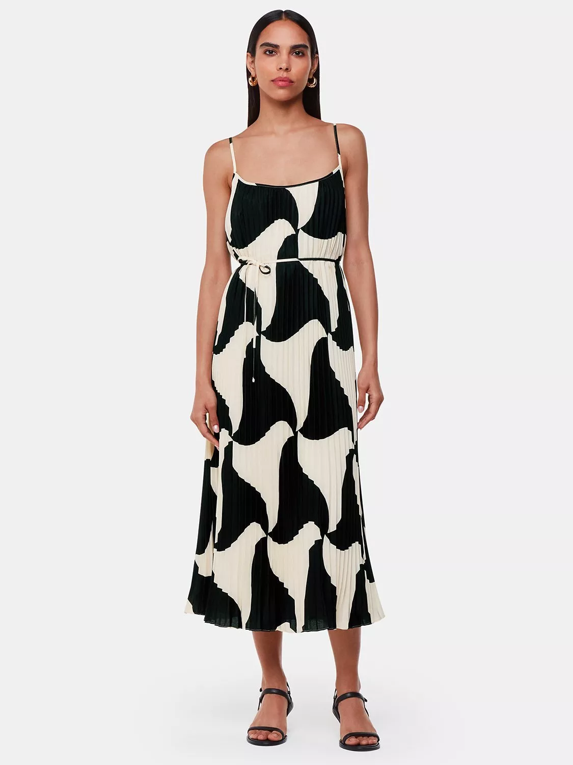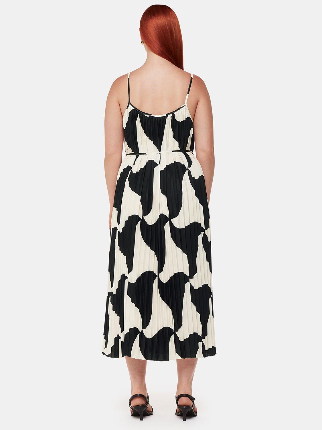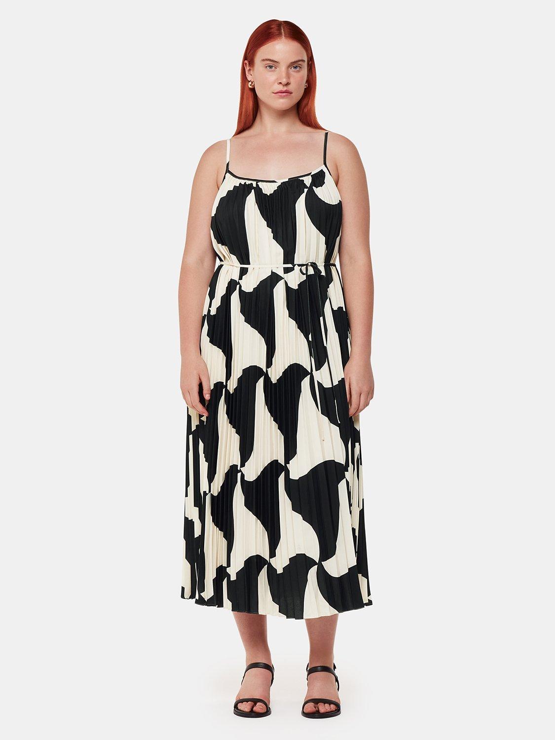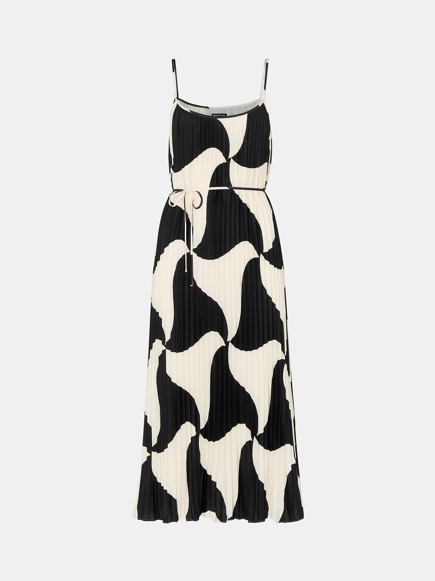 A summer-ready pleated style, this midi dress from Whistles is made with longevity thanks to its fabrication. With an edgy squared-off neckline and suspended from spaghetti straps, it catches the eye with a modern abstract print.
