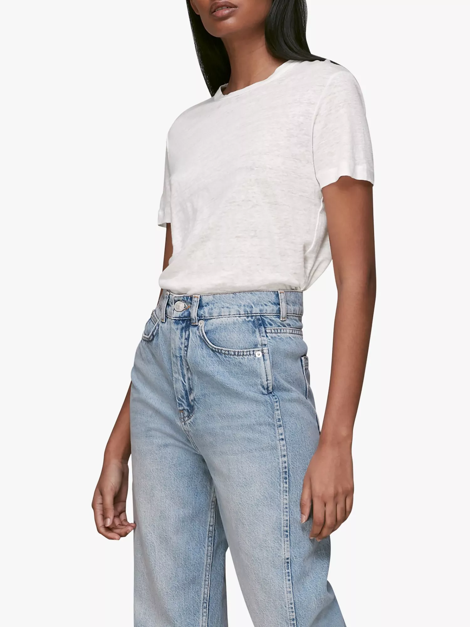 Made from pure linen jersey, this T-Shirt from Whistles offers easy warm-weather style. Cut to a relaxed silhouette with a ribbed round neckline and short sleeves, this top effortlessly adds a casual touch to any look - try tucking into printed midi skirts or simply layer over denim.