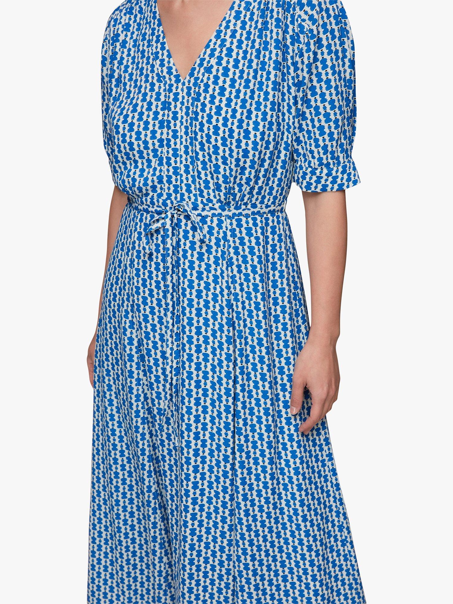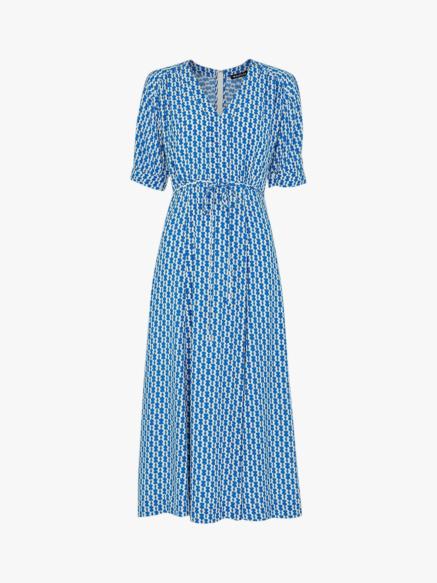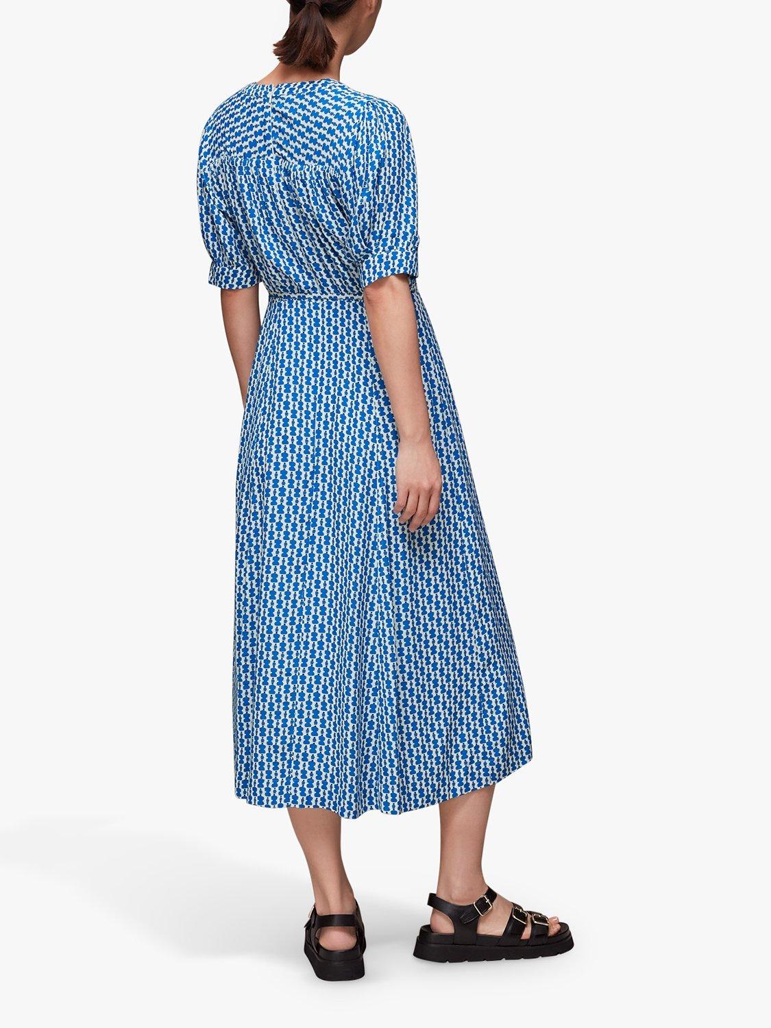 A tried-and-true favourite, this midi dress from Whistles is crafted from an airy viscose fabric. With a fuss-free but smart v-neckline and short sleeves, it is splattered with a vertical stack print.