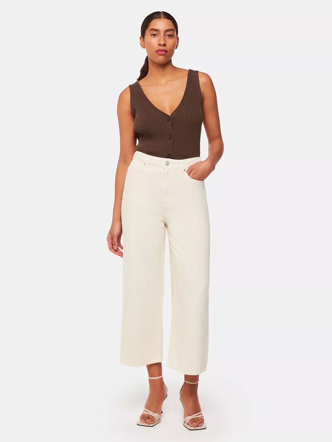Featuring a wide-leg silhouette, these high-waisted jeans by Whistles have a pure cotton construction and are cropped for a fresh look.
