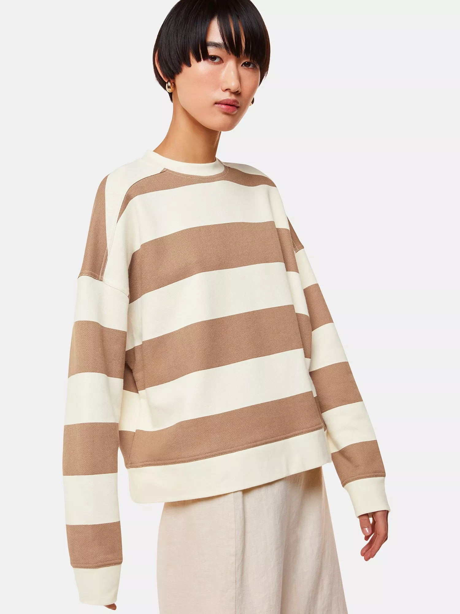Making layering up easy with a crew neckline and long sleeves, this lightweight stripe jumper from Whistles keeps breathability in mind with a cotton composition.