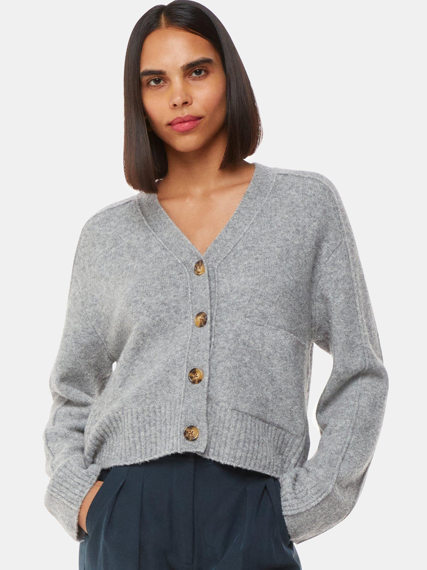 Featuring a traditional v-neckline, this pocket detail cardigan from Whistles is constructed from a wool-rich blend for an ultra-cosy and luxuriously warm finish.