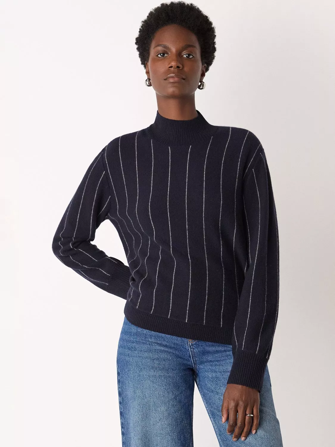A funnel neck striped jumper from Whistles. Crafted in soft wool, it keeps you warm and comfortable through shifting seasons, giving you an effortlessly smart look you can wear anywhere.