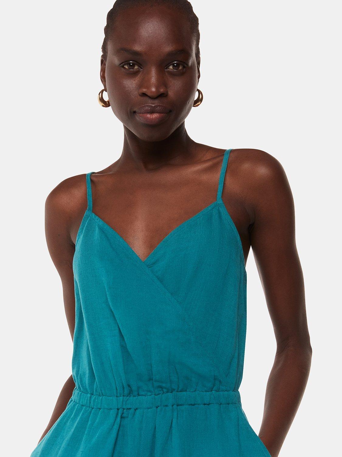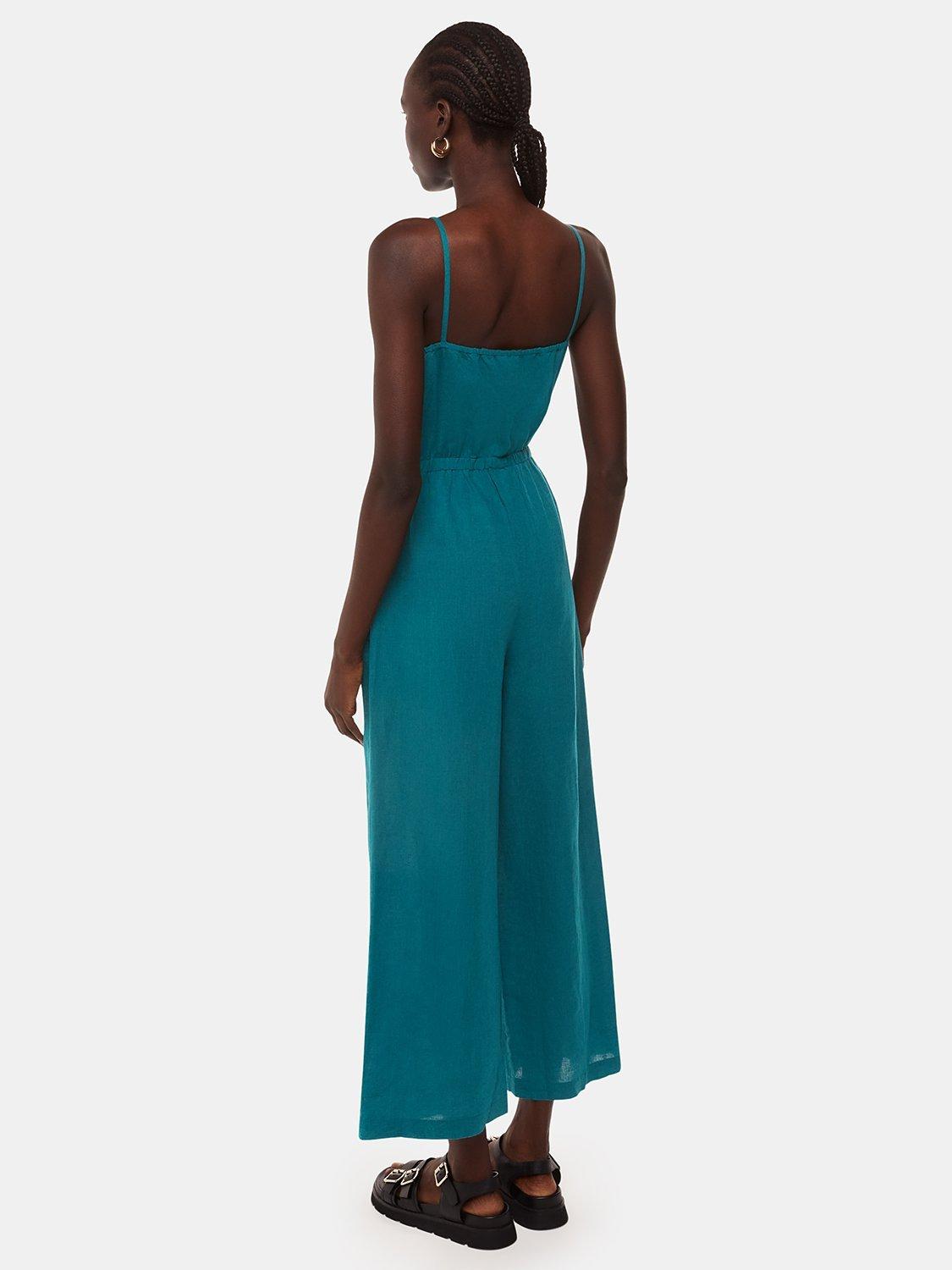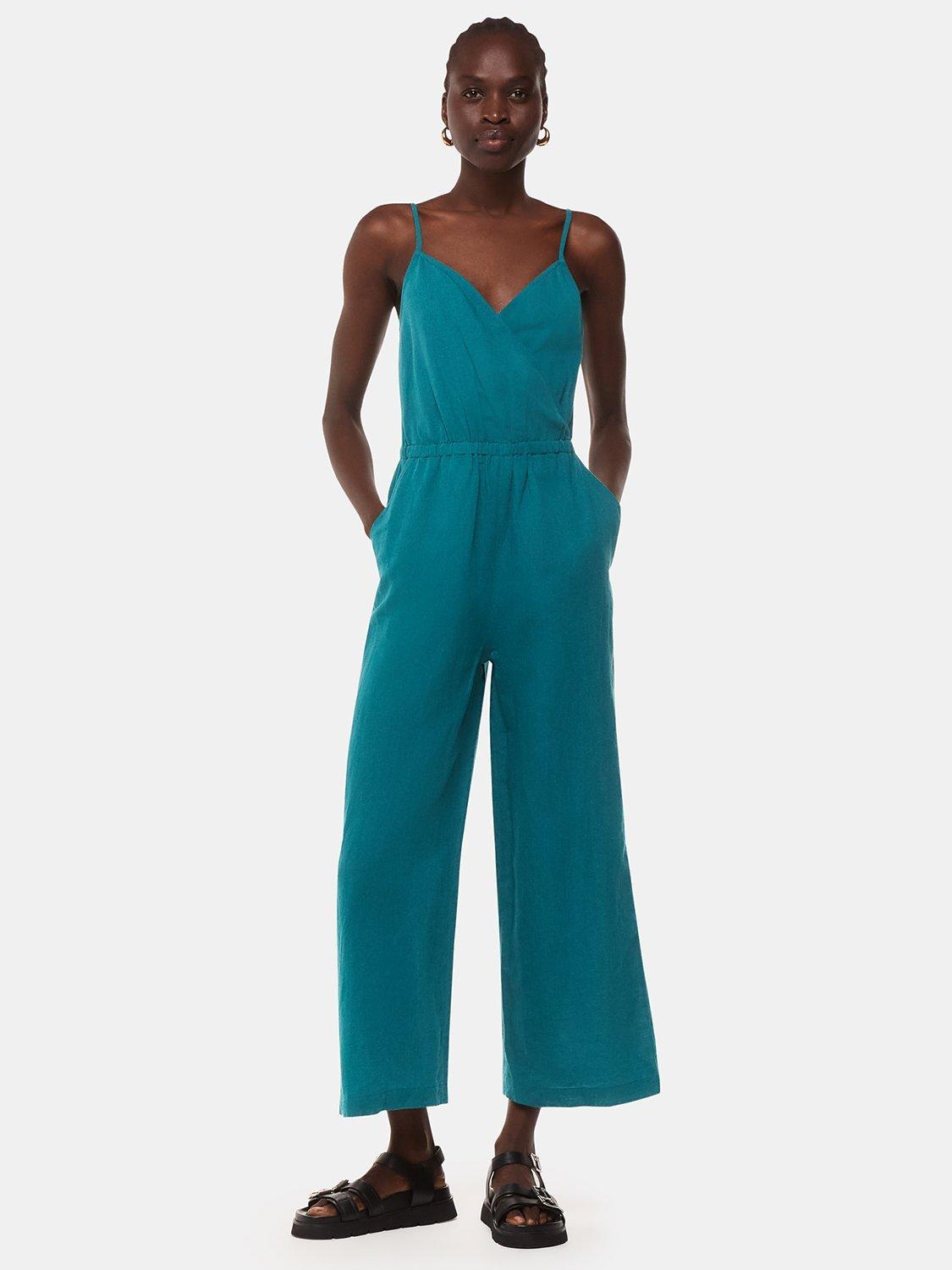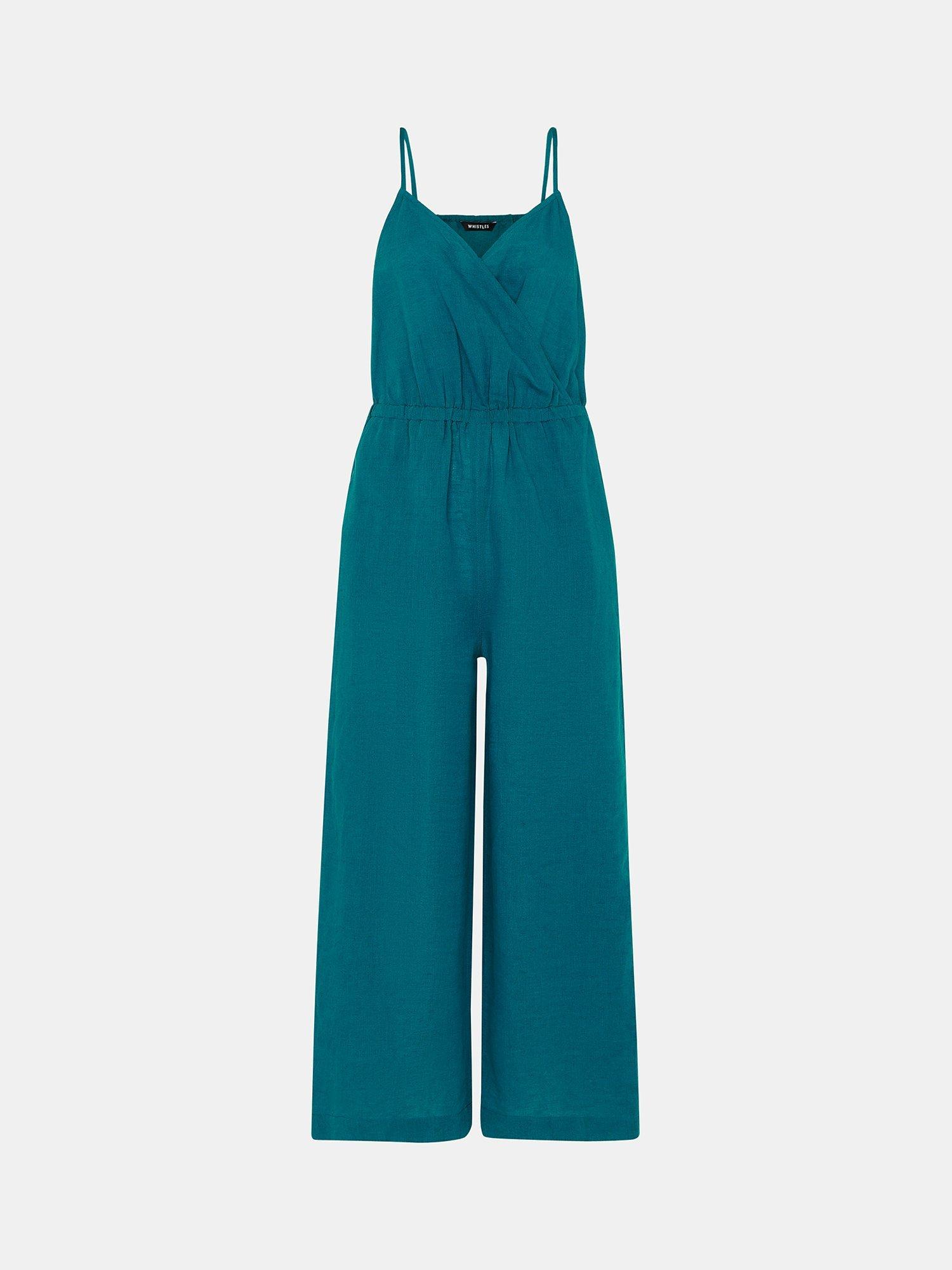 Framed with a flattering wrap-over front and spaghetti straps, this jumpsuit by Whistles comes in a breathable linen-cotton blend.