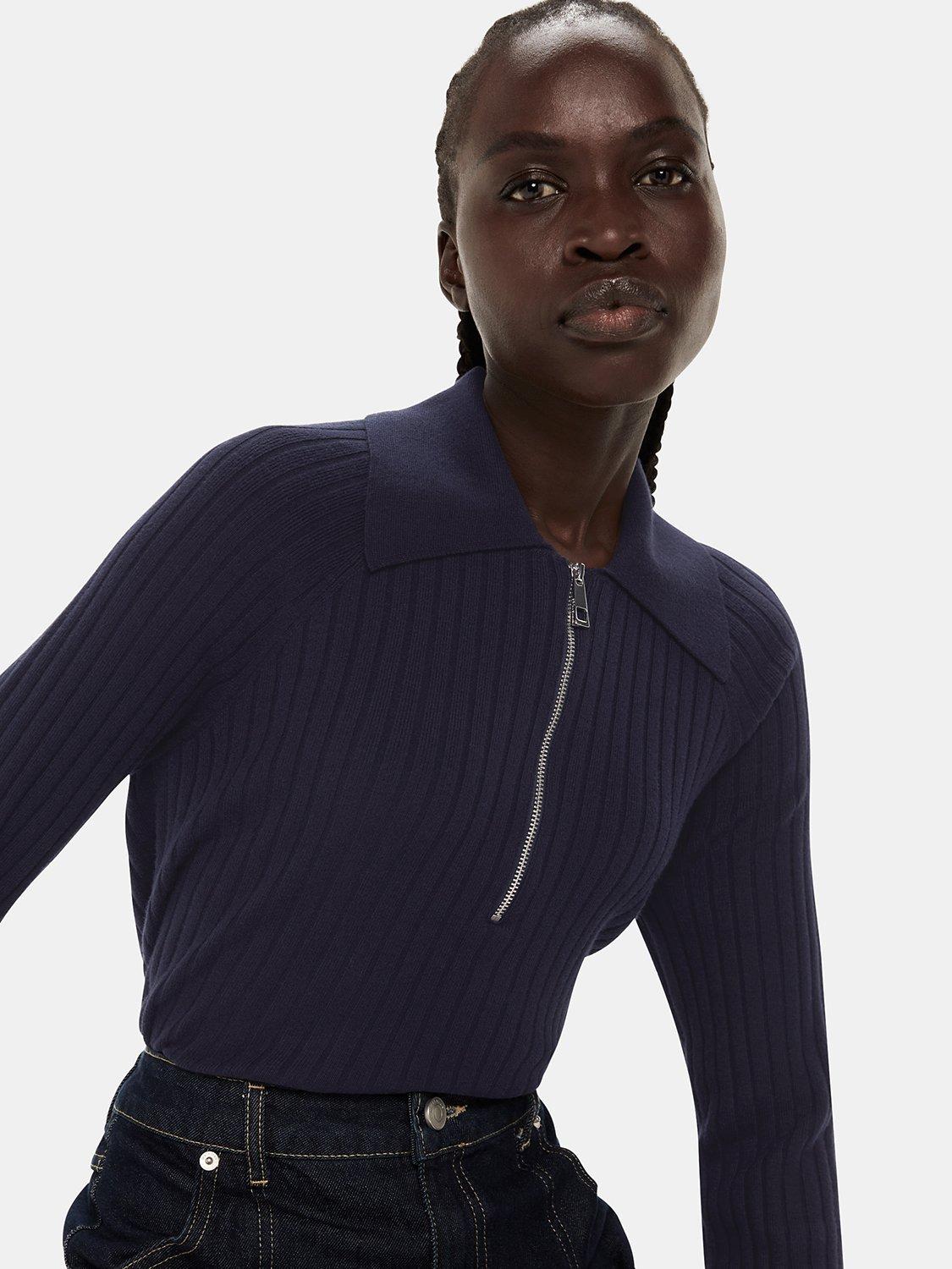 Crafted from a soft cotton blend, this polo has a sports-inspired zip neck and comes in a classic polo shape and neutral hue that is easy to wear. Tuck it into mid wash denim and add sleek leather boots this season, or team with elegant bias cut skirts for a look to take you from day-to-night.