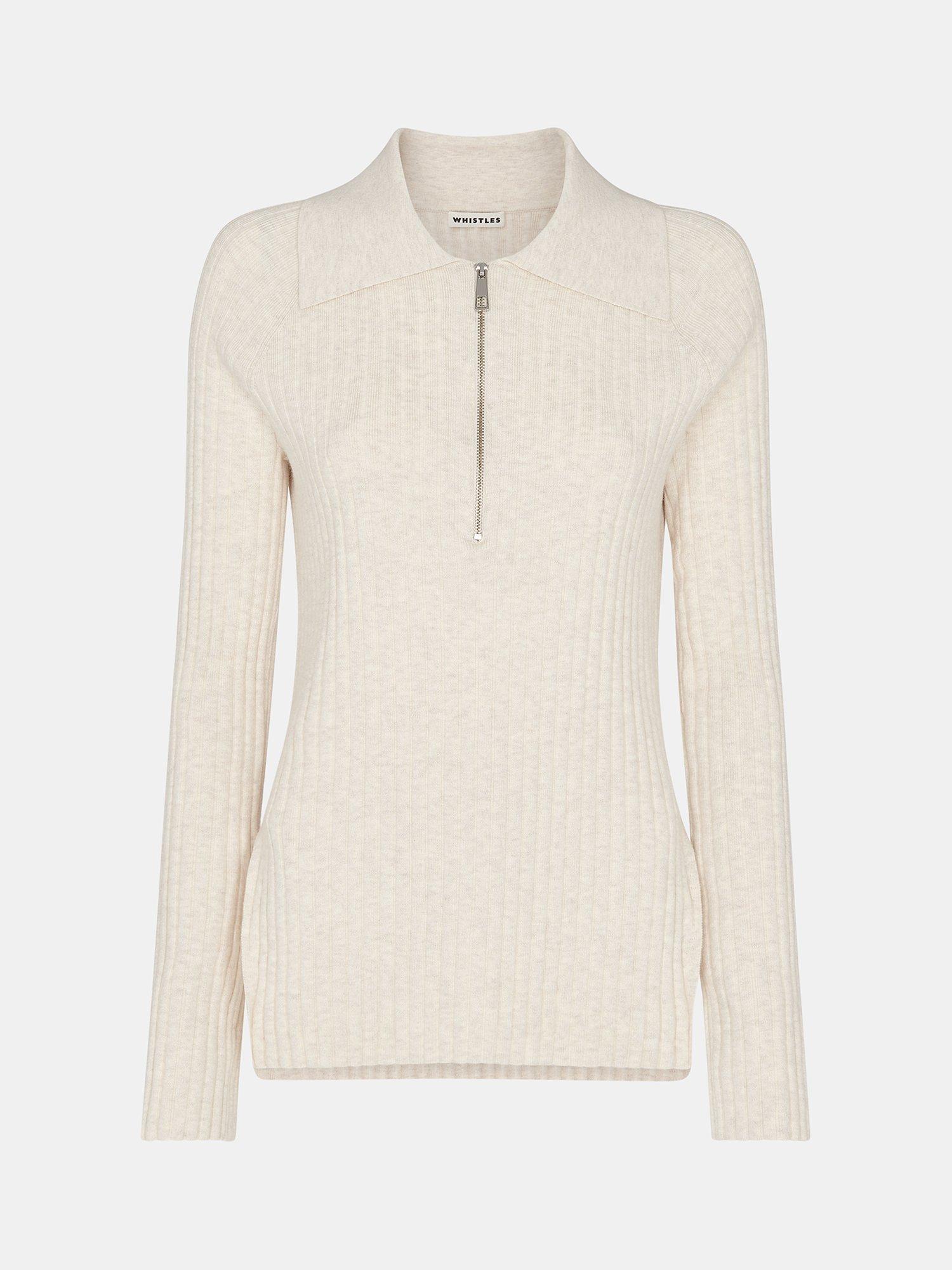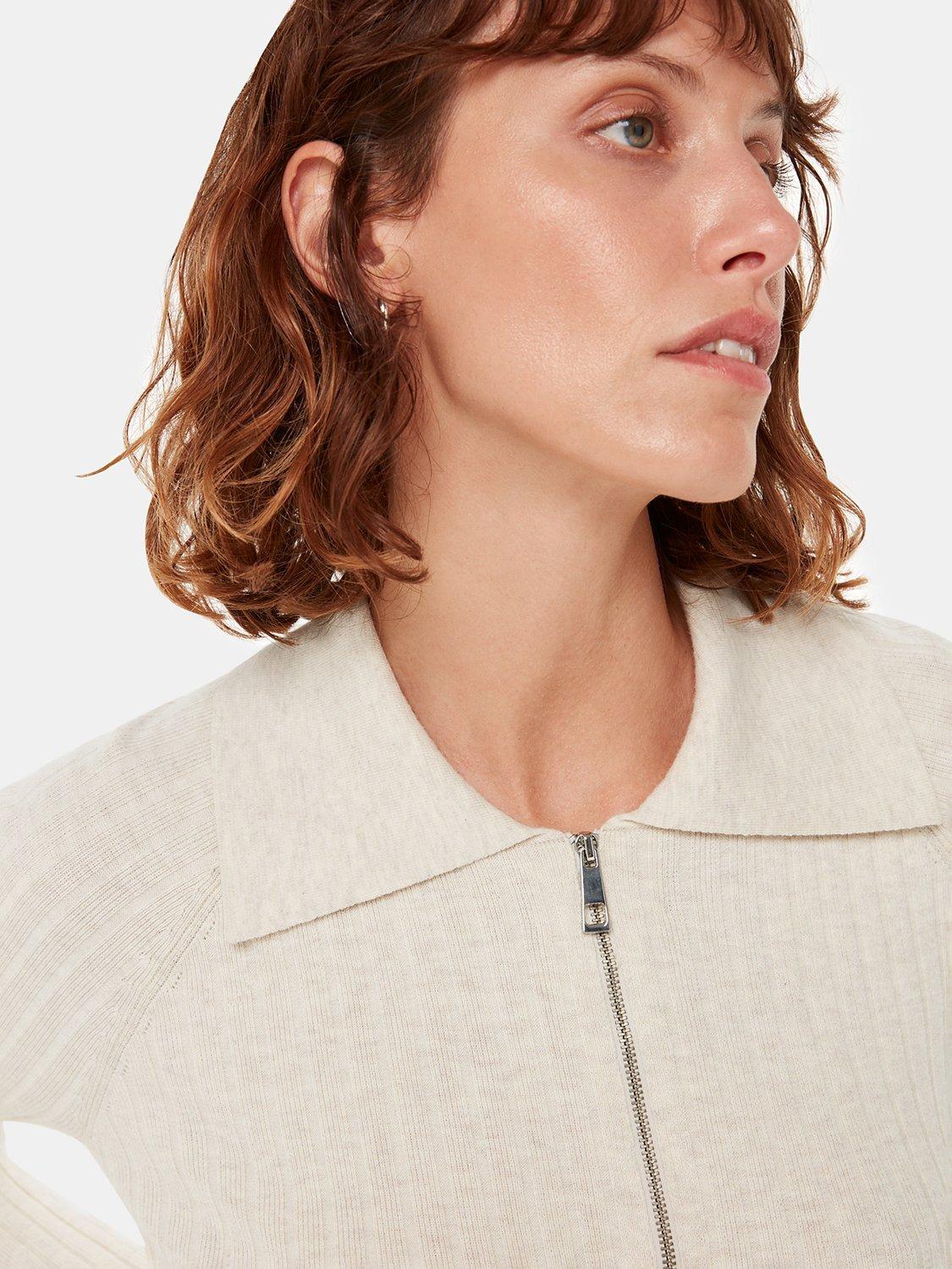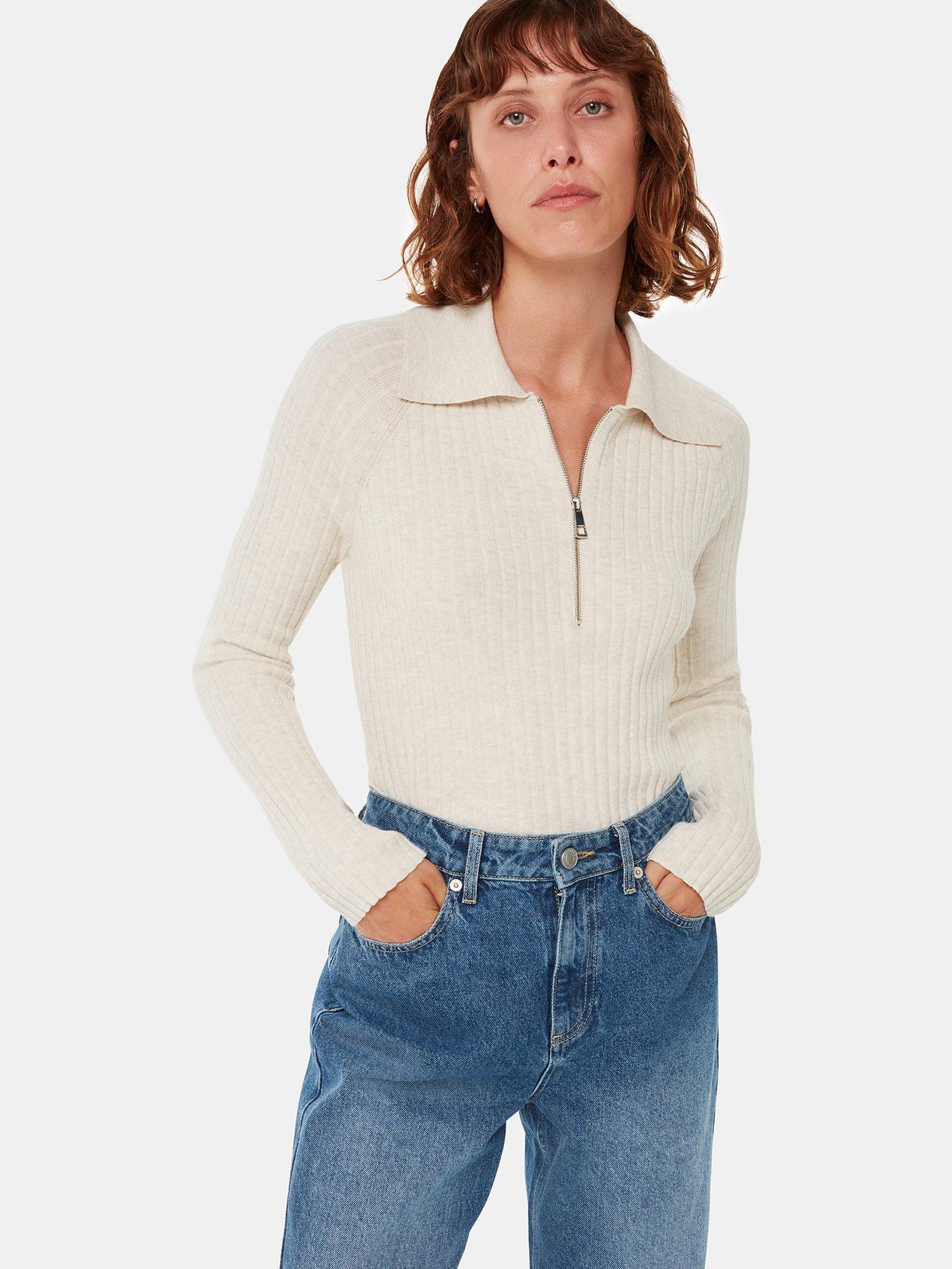 Crafted from a soft cotton blend, this polo has a sports-inspired zip neck and comes in a classic polo shape and neutral hue that is easy to wear. Tuck it into mid wash denim and add sleek leather boots this season, or team with elegant bias cut skirts for a look to take you from day-to-night.