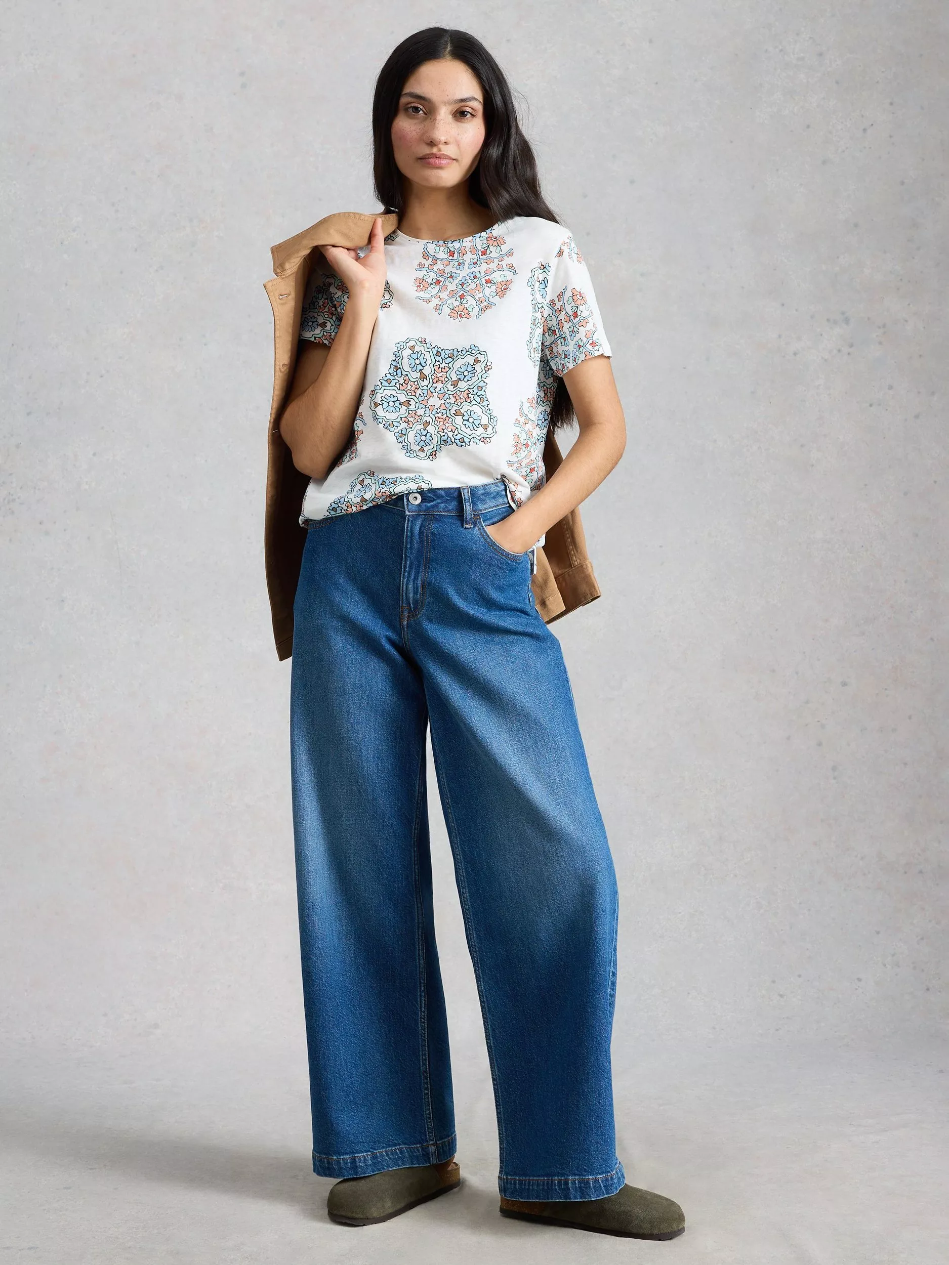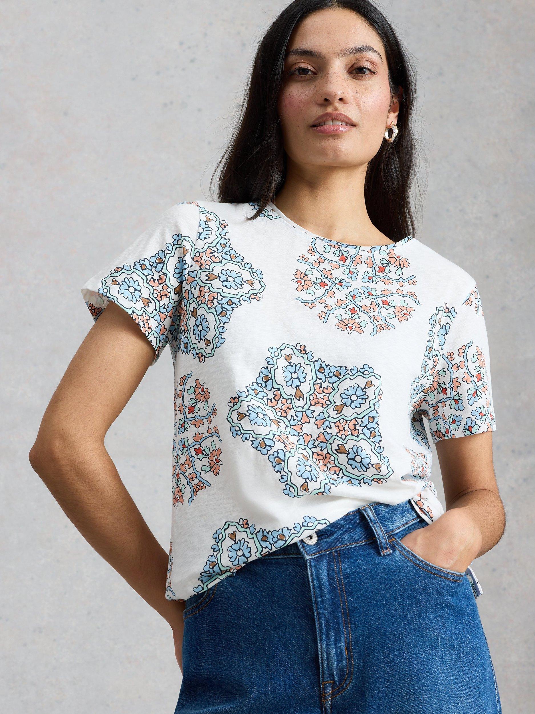 An everyday T-shirt by White Stuff, made from soft and breathable cotton. With a round neck and short sleeves, it adds impact with its eye-catching abstract pattern. One for your everyday lineup.