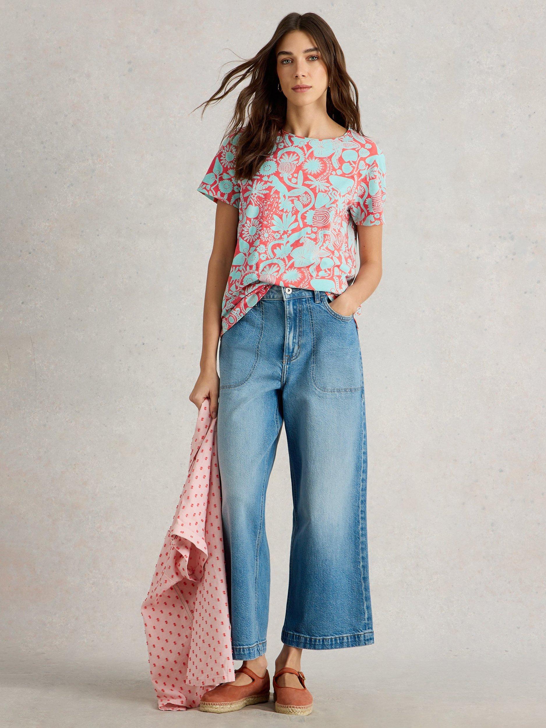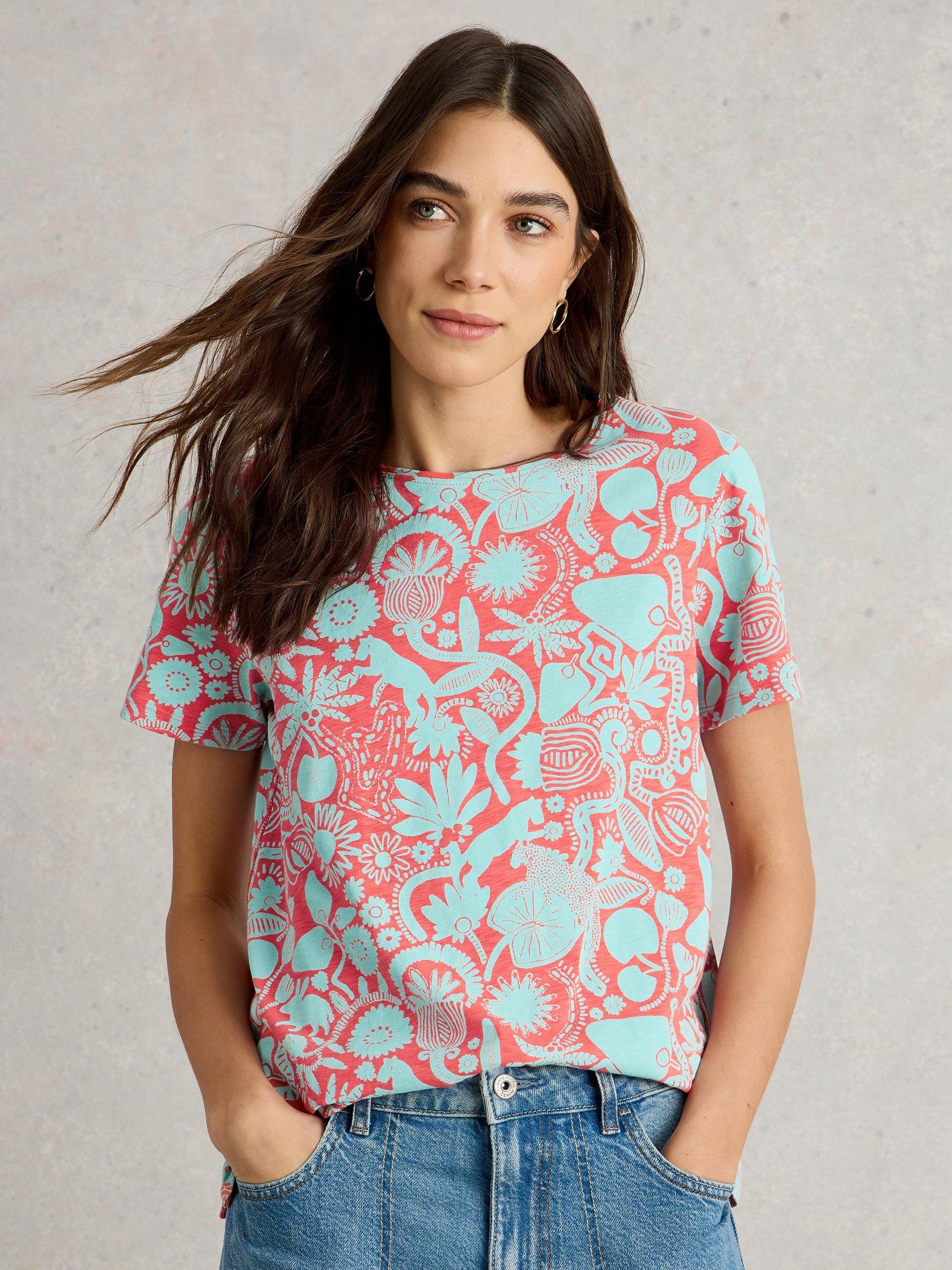 White Stuff boasts a patterned short sleeve, crew neck tee. Wear alone in the sun, or pair with a simple blazer to chic it up.
