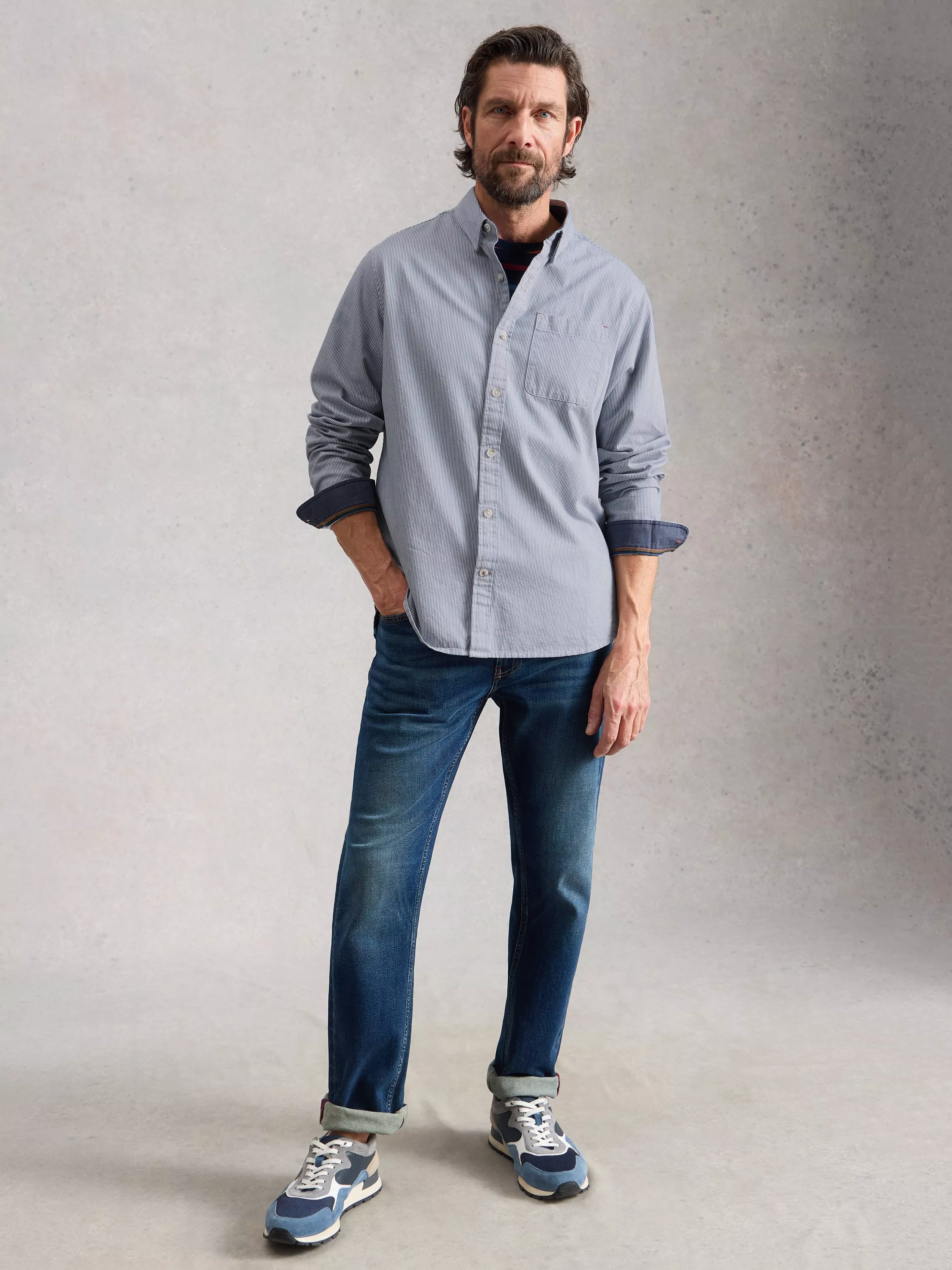 Make your day easier with this crisp cotton shirt. Its classic stripes and regular fit ensure you look polished while feeling comfortable. Perfect for bringing smart style and ease to busy routines.
