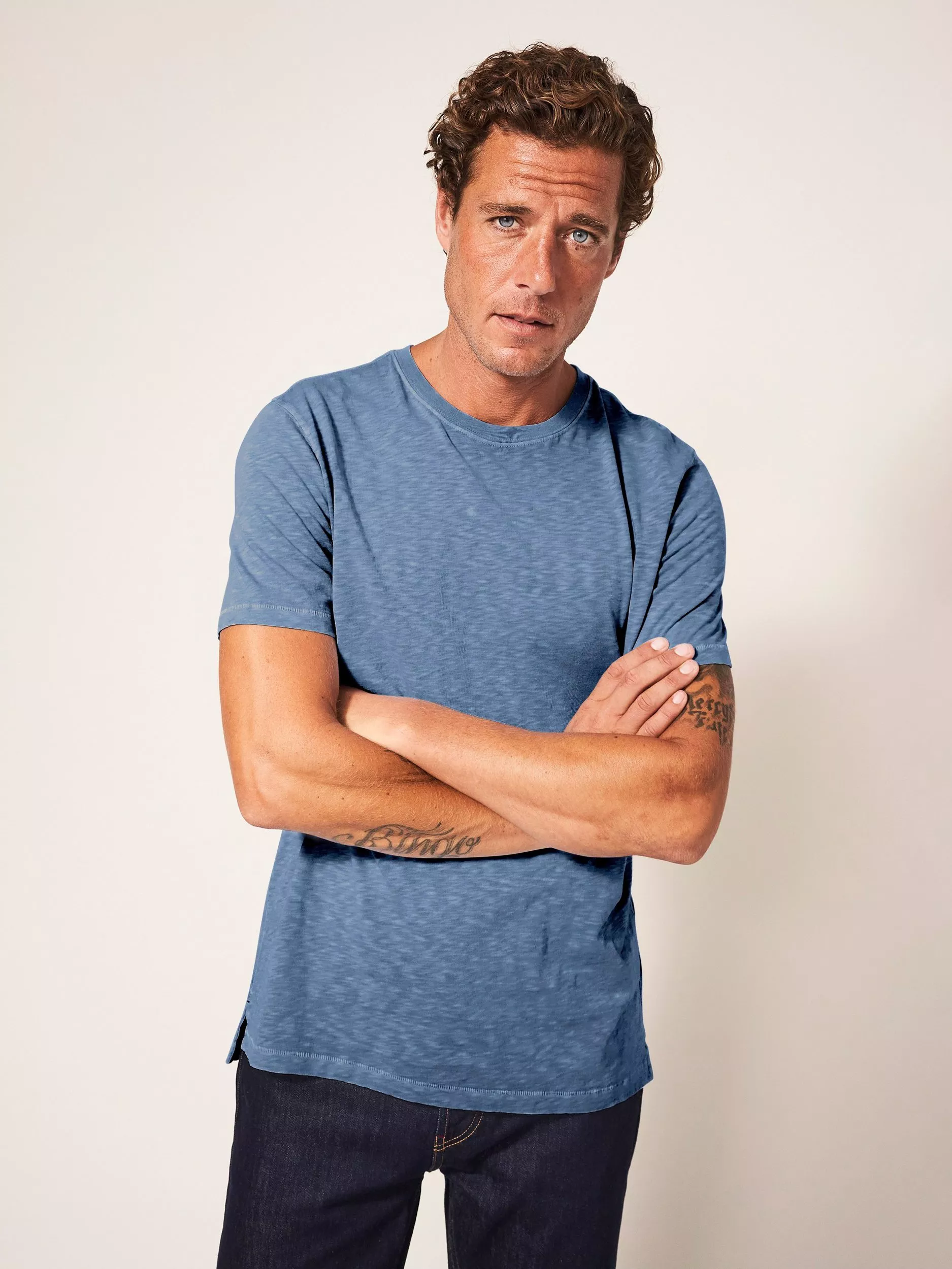 White StuffAbersoch Cotton T-Shirt, Mid Blue