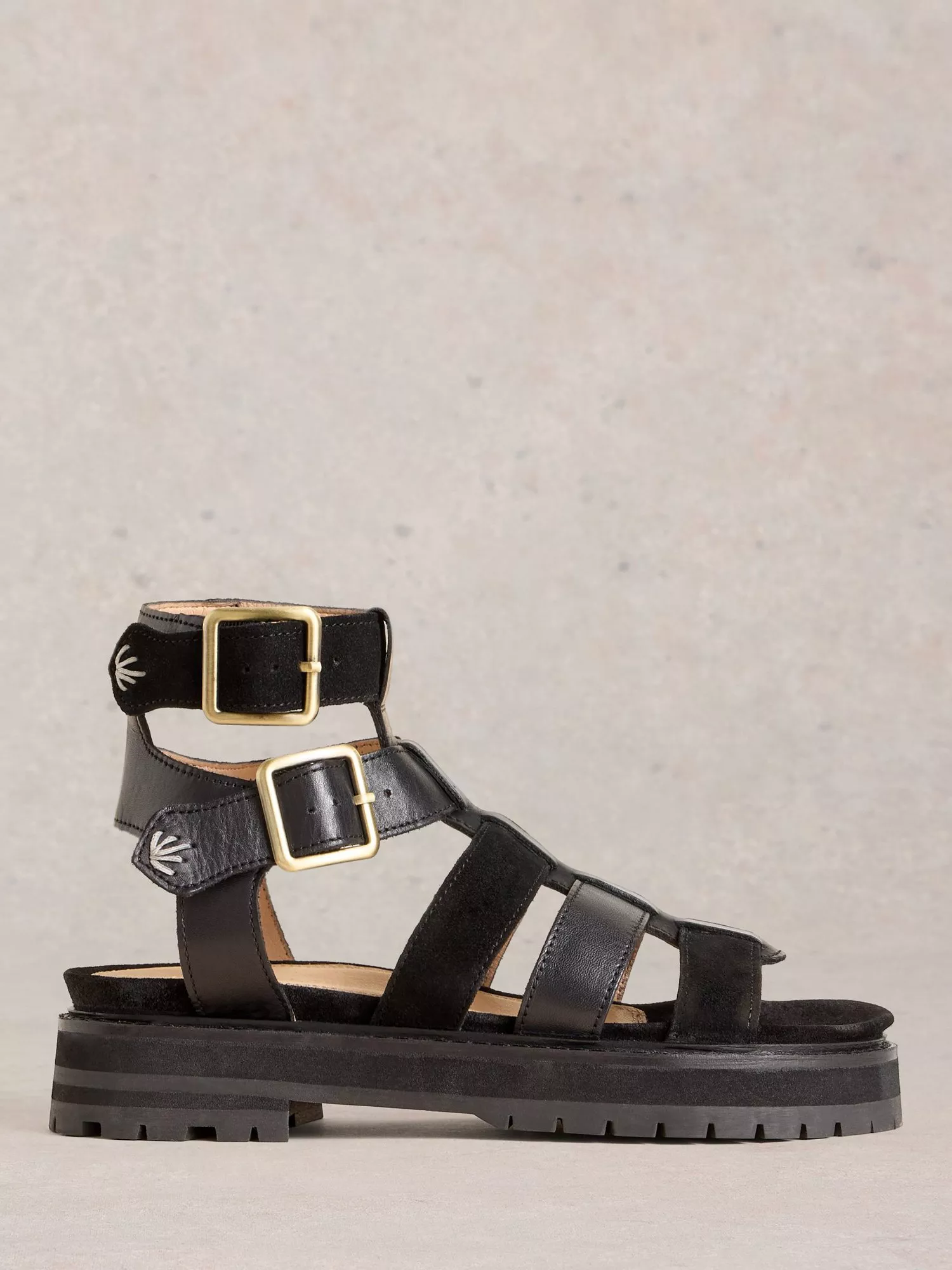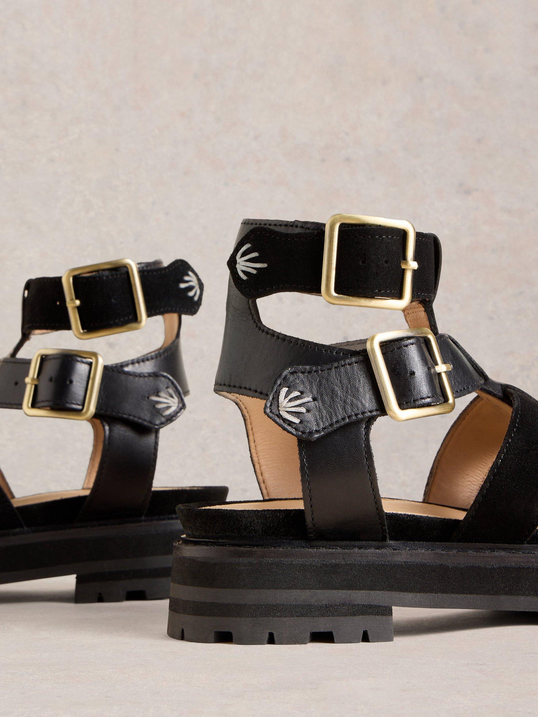 Stepping into the warmer weather in style, this pair of strappy sandals by White Stuff is made with luxurious suede uppers. Sitting on a block platform heel with cushioned soles for comfort, they are finished with double buckles at the ankle.