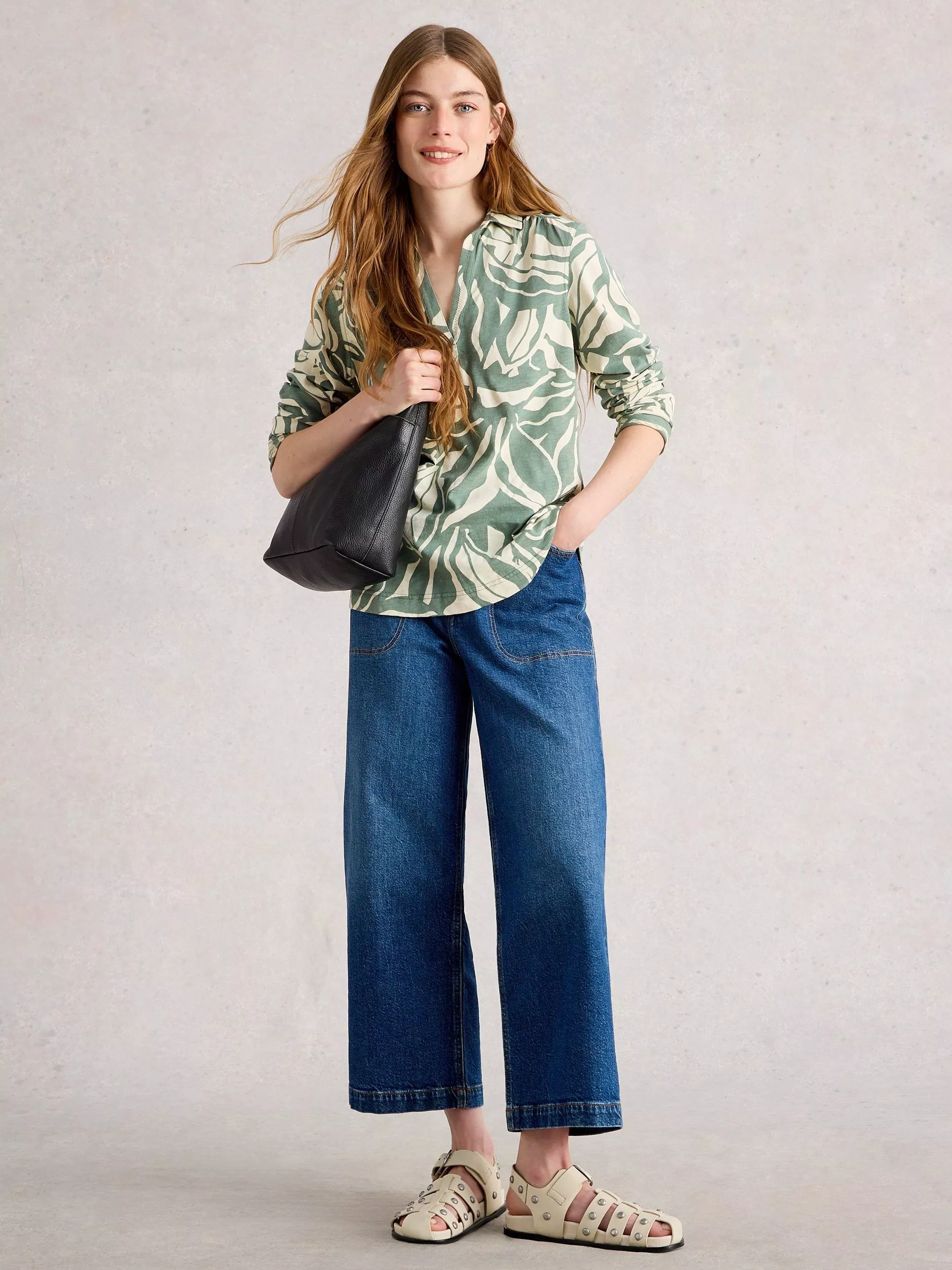 White StuffAllie Tree Print Long Sleeved Cotton Shirt