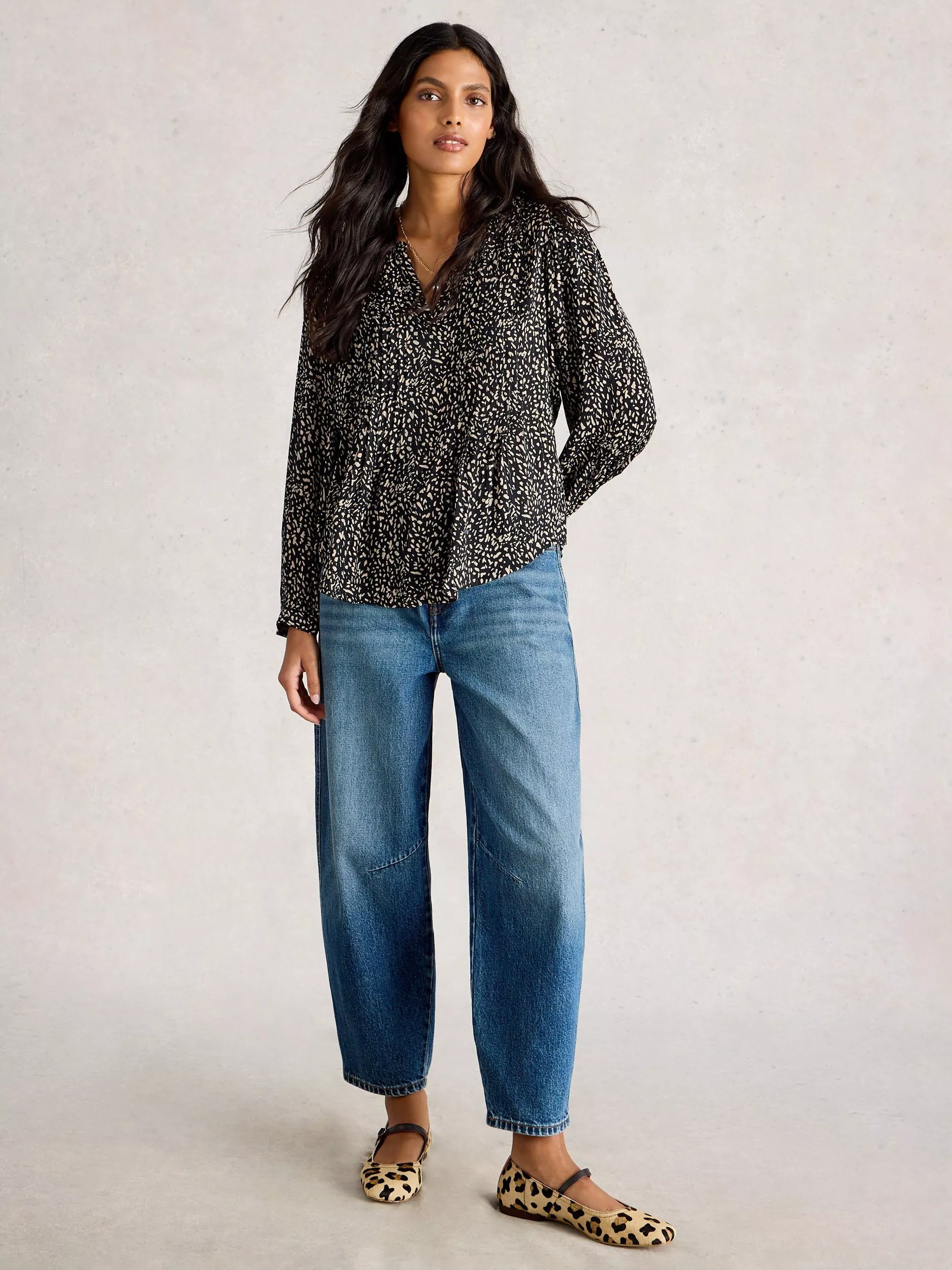 An effortless blouse from White Stuff. With a V-neck and long sleeves, it will become a firm favourite with its animal print. Casual, comfortable, and effortlessly chic.