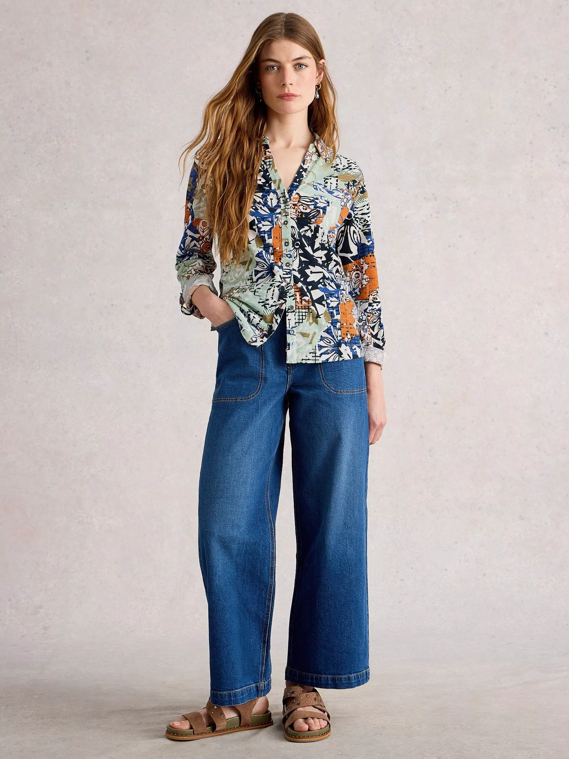 The unique abstract print and classic button-down design offer endless styling possibilities, making it a versatile and essential addition to any wardrobe.