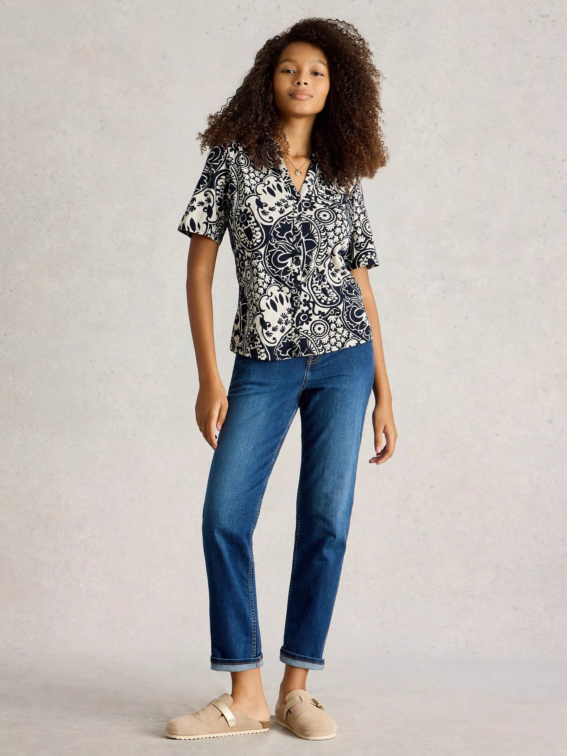 Elevating your everyday, this button-down jersey shirt from White Stuff will brighten your wardrobe with its pretty paisley print. With a neat collared neck and short sleeves, it's made from soft and breathable cotton.