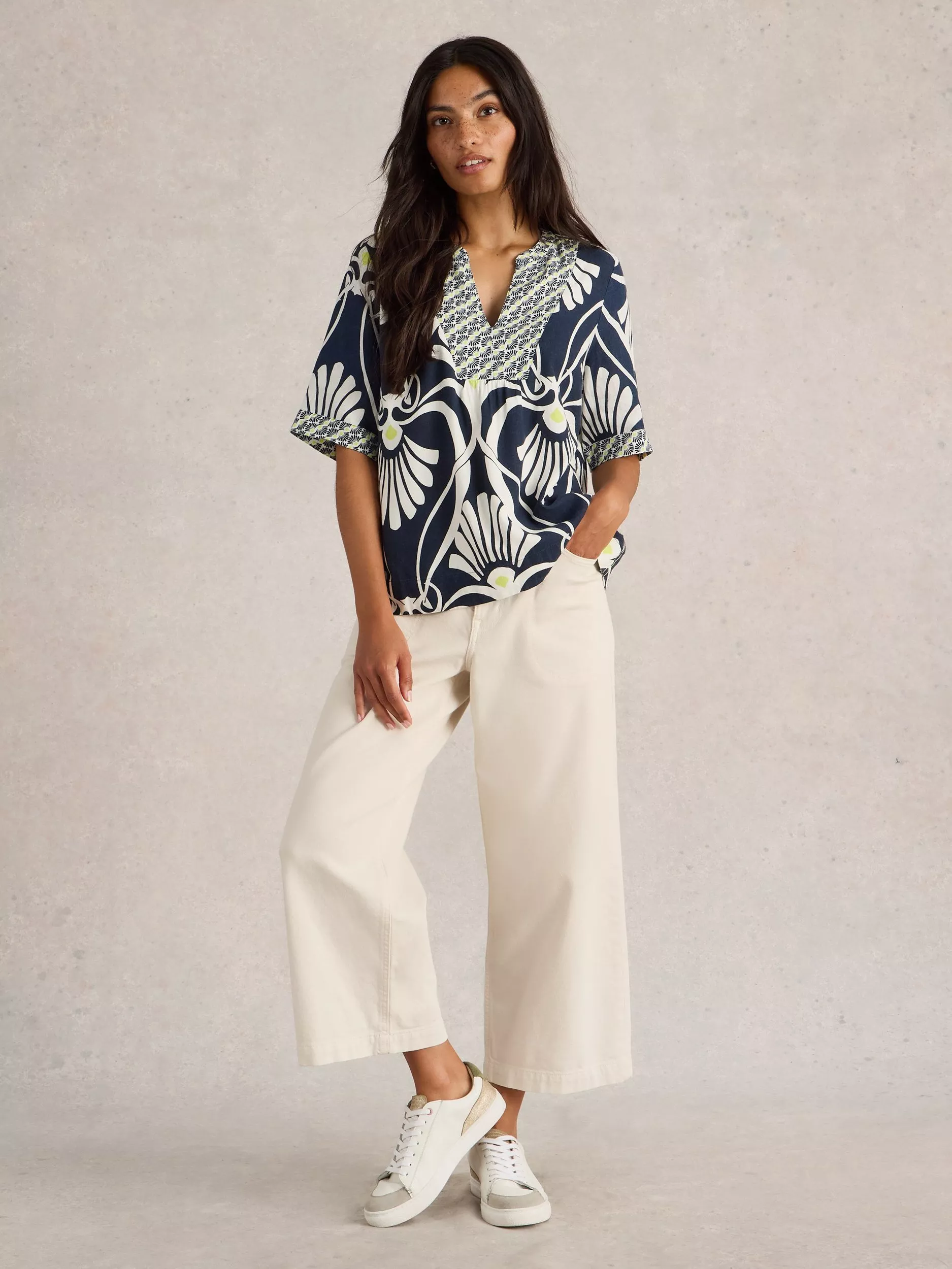 Bringing a neat addition to your wardrobe, this top from White Stuff stays feminine with a pretty floral print. Classic in cut with a v-neckline and short sleeves, it has a high linen content in its mix, making it lightweight and airy.