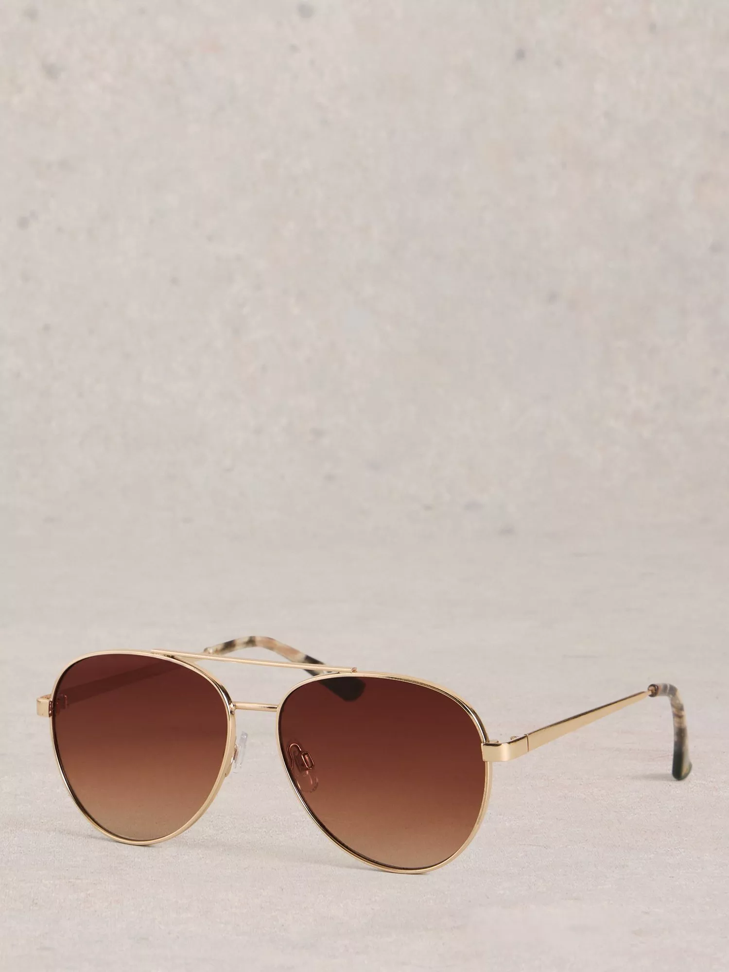 White StuffAviator Sunglasses, Gold/Brown Gradient