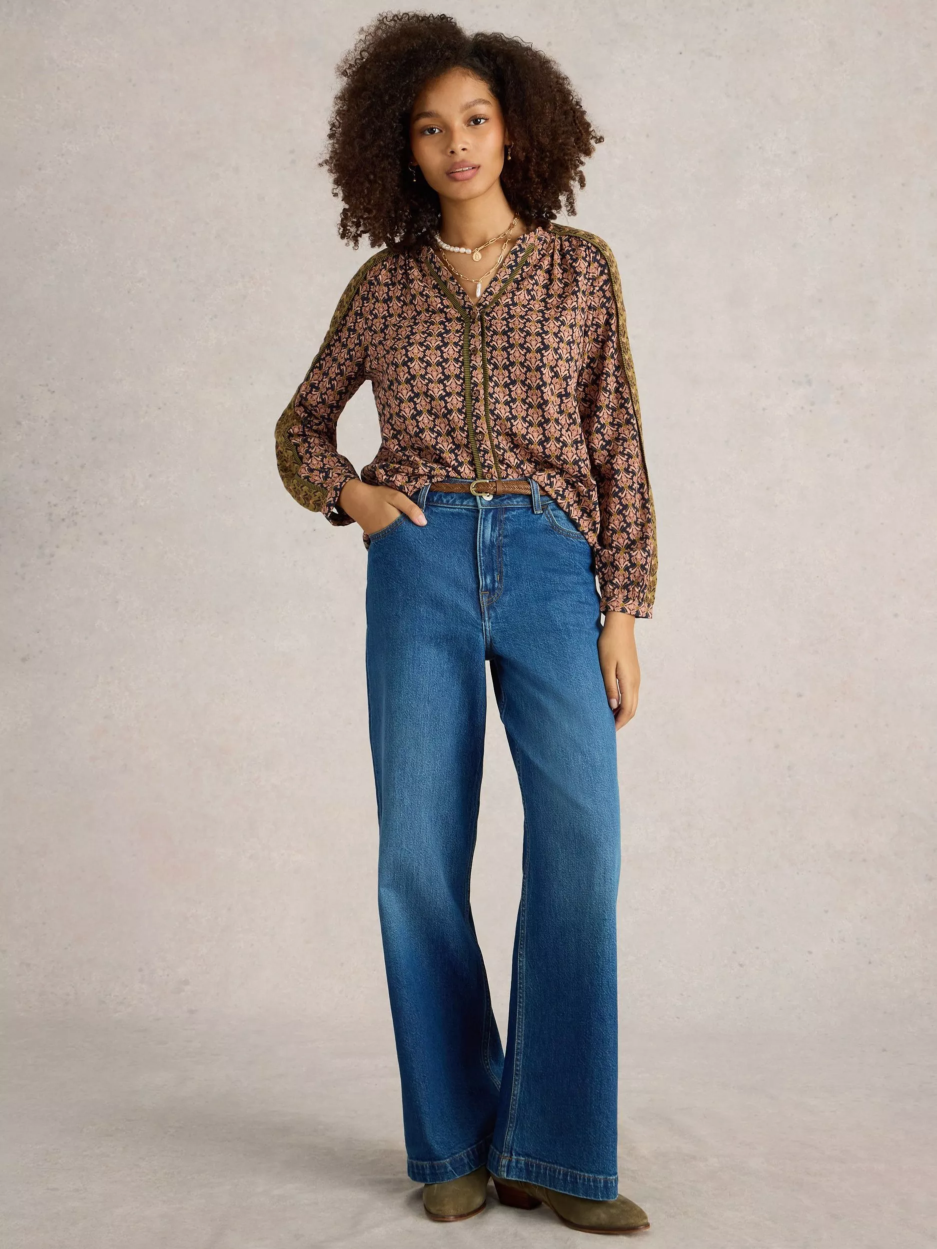 A pair of wide leg jeans from White Stuff, designed in a stretchy organic cotton blend with a mid-rise waist, a zip fly and a classic five-pocket construction.