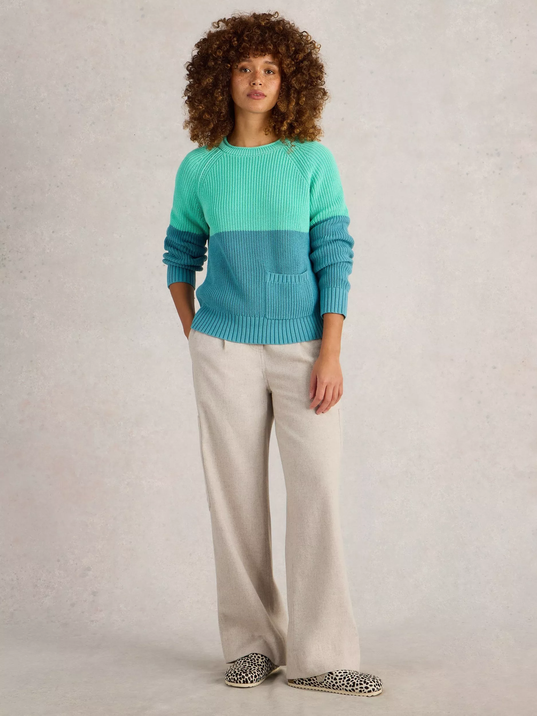White StuffBailey Colour Block Pure Organic Cotton Jumper, Blue/Multi