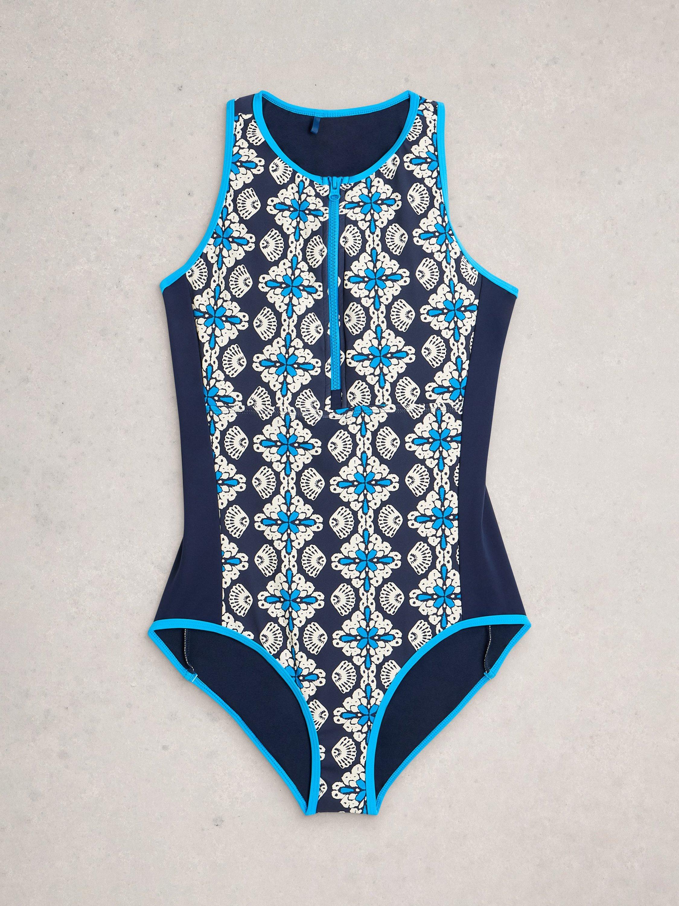 White StuffBay Zip Swimsuit, Navy