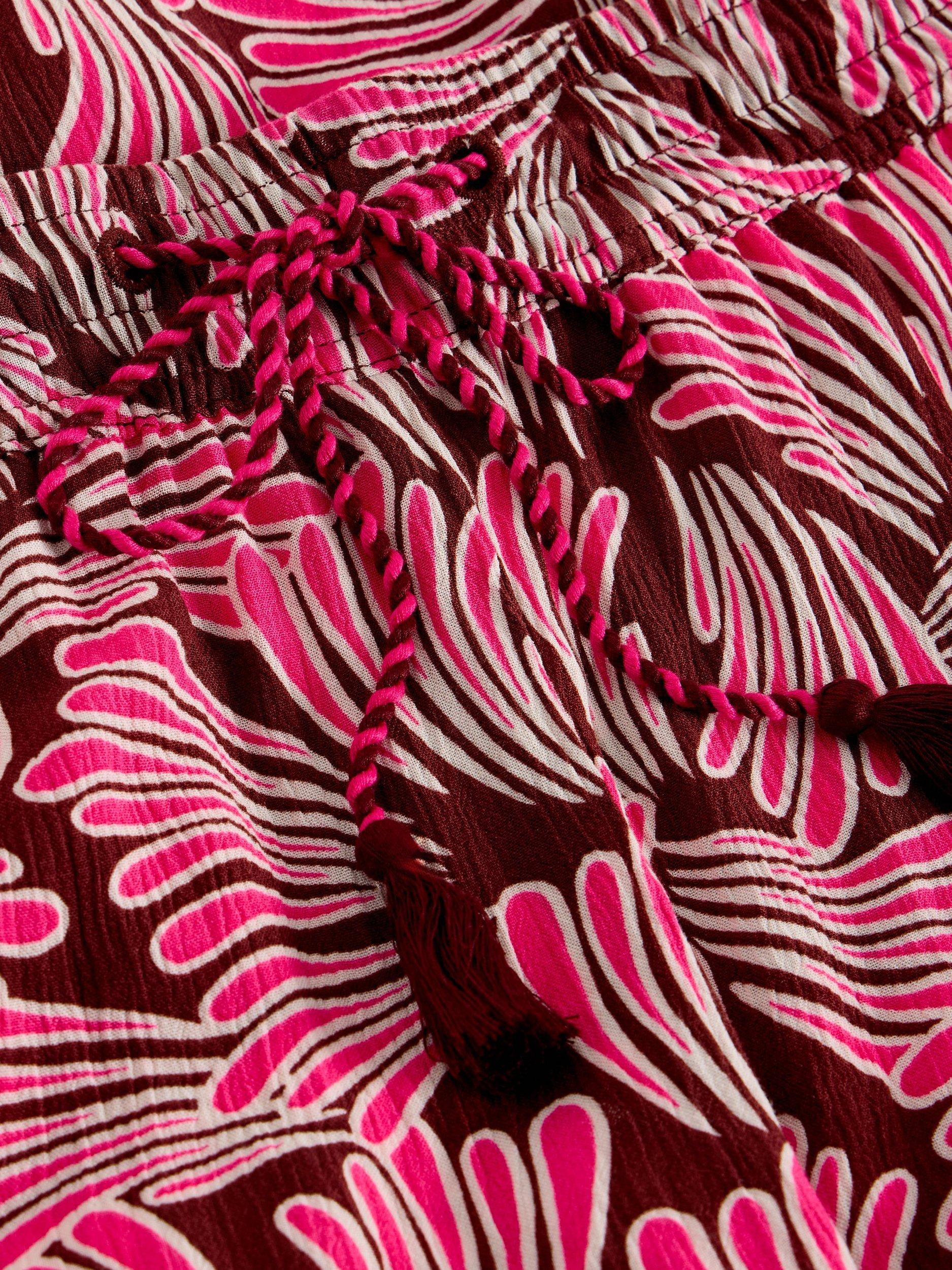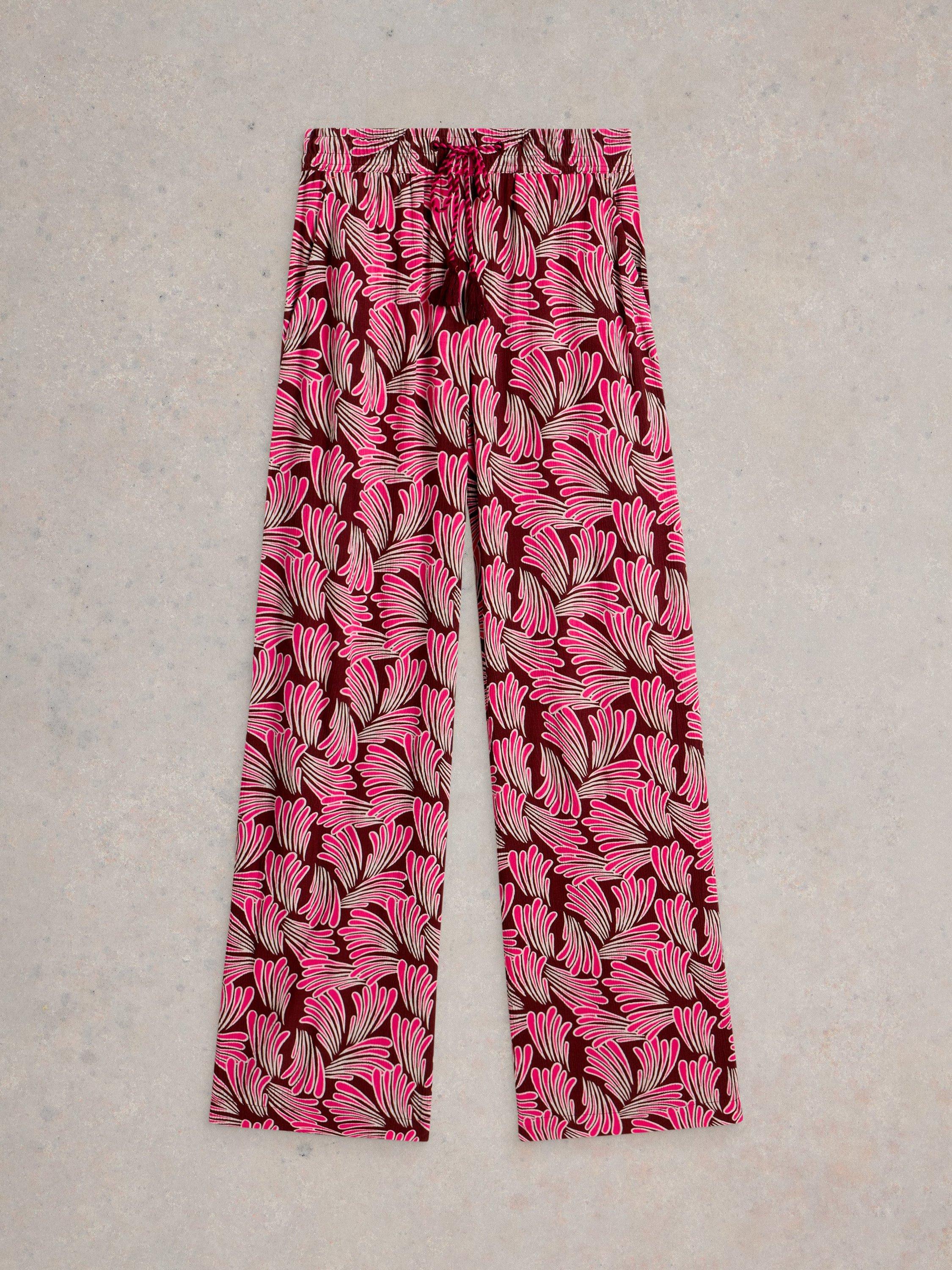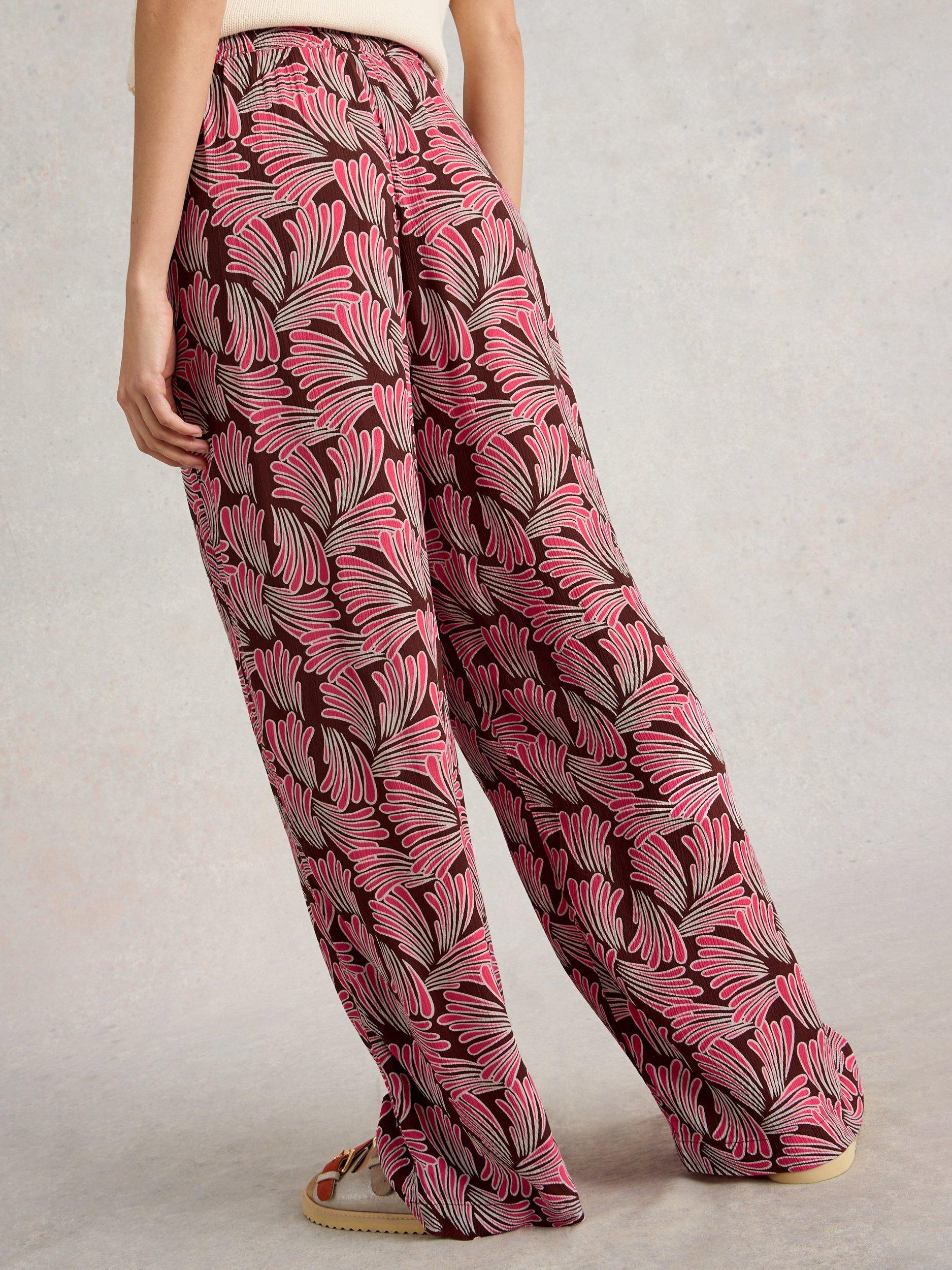 White StuffBelle Crinkle Wide Leg Trousers, Pink/Multi