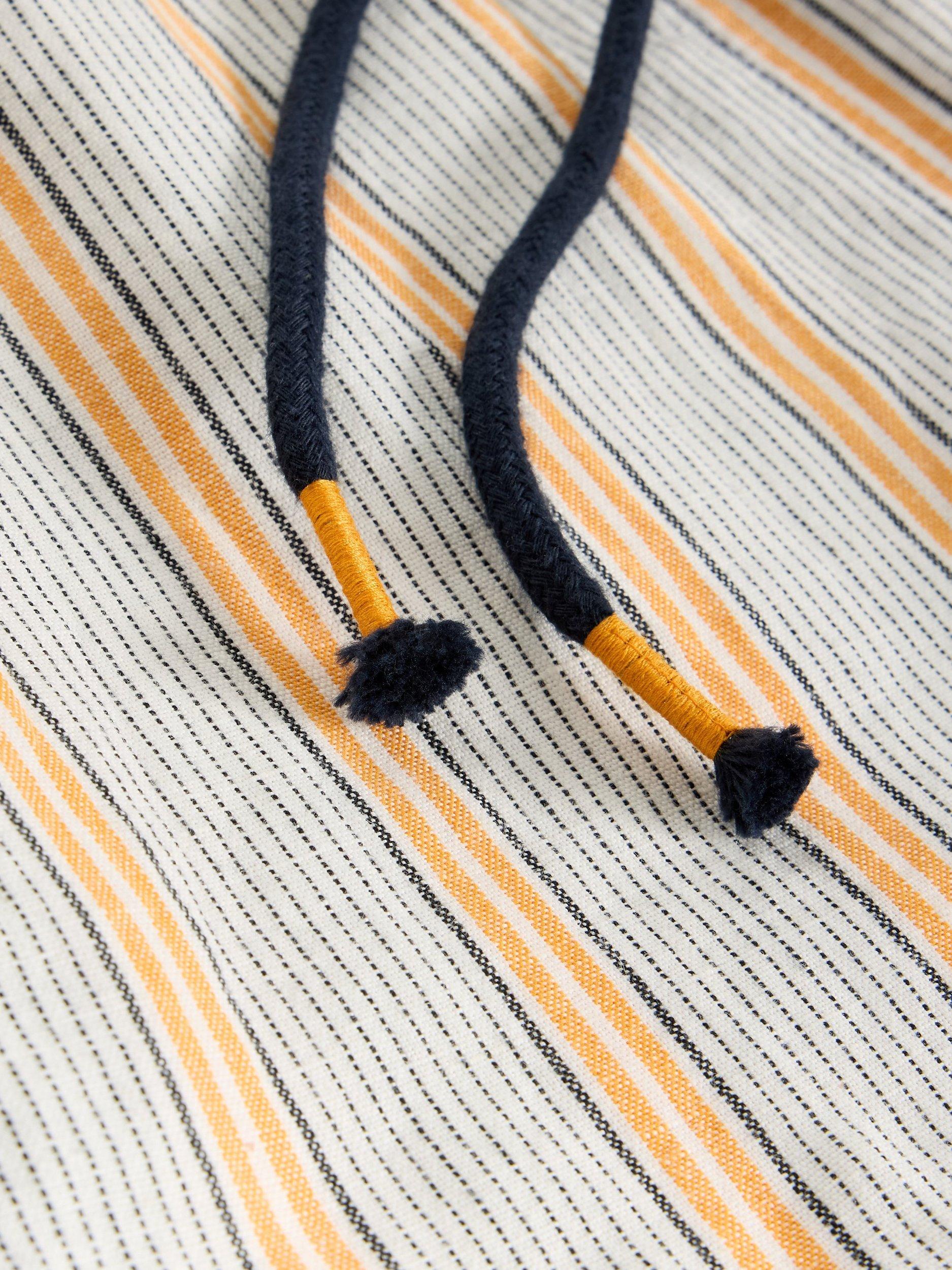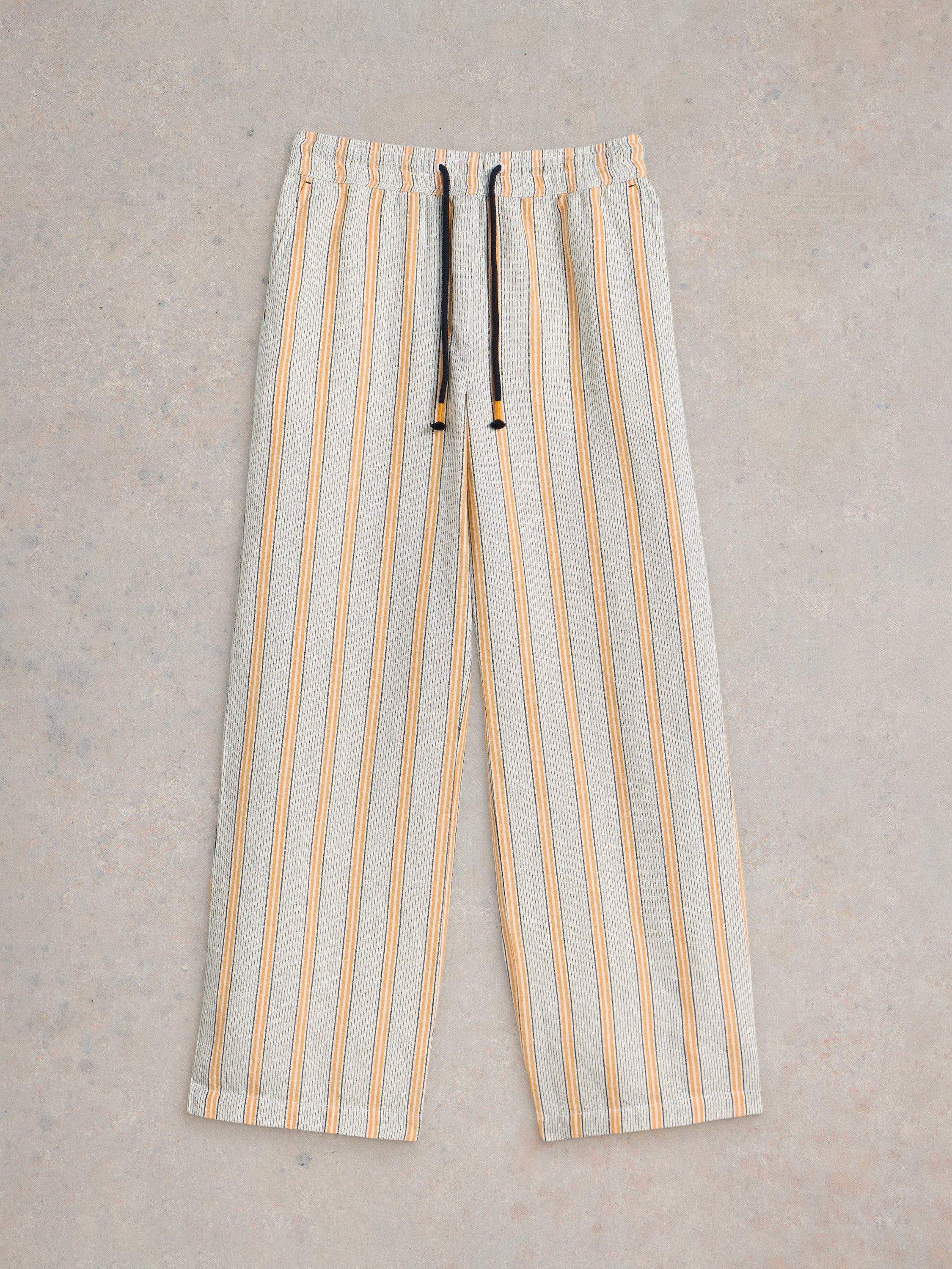 Whipped together with a lightweight linen blend, they keep within the straight and narrow with a striped design.