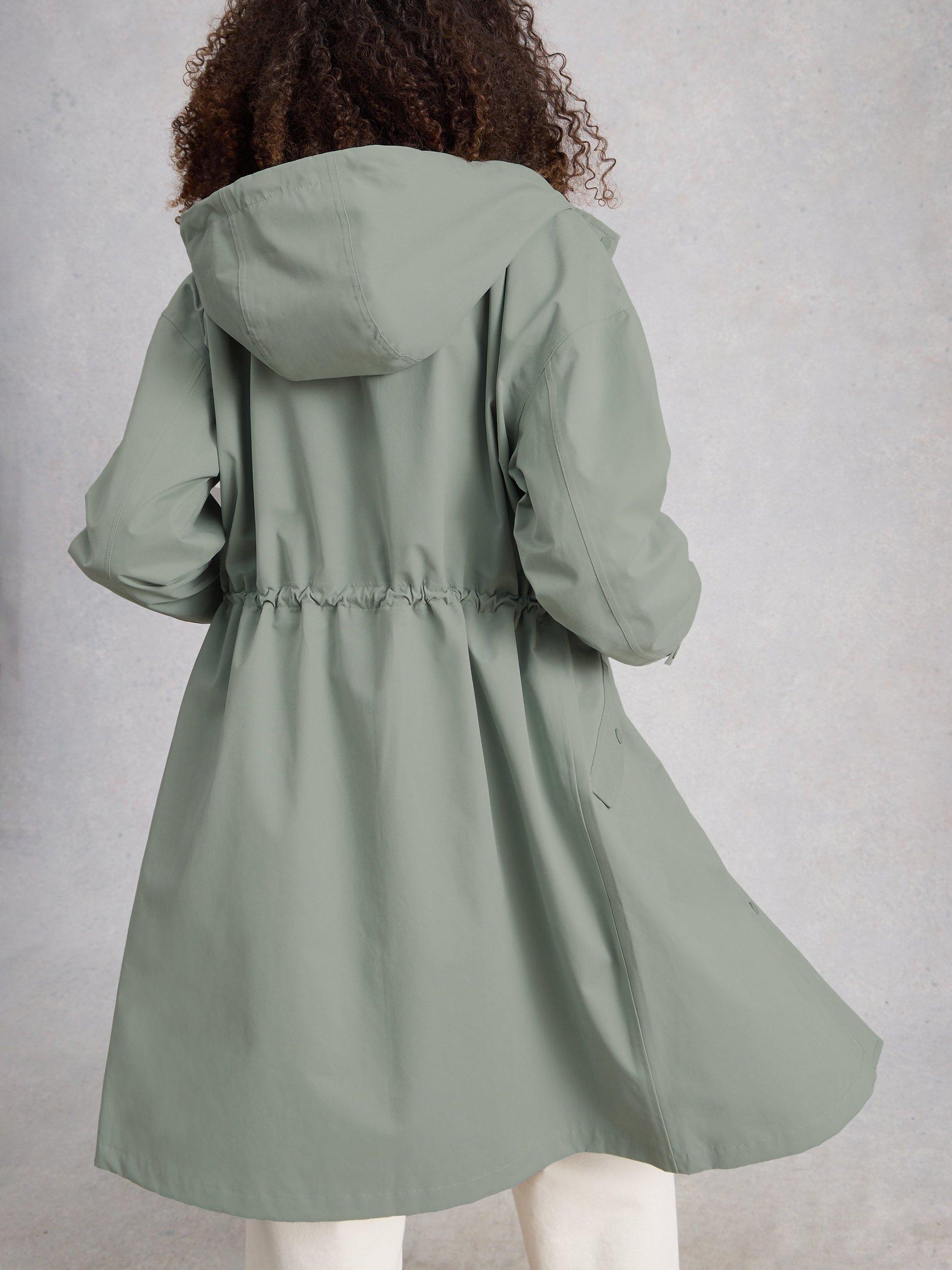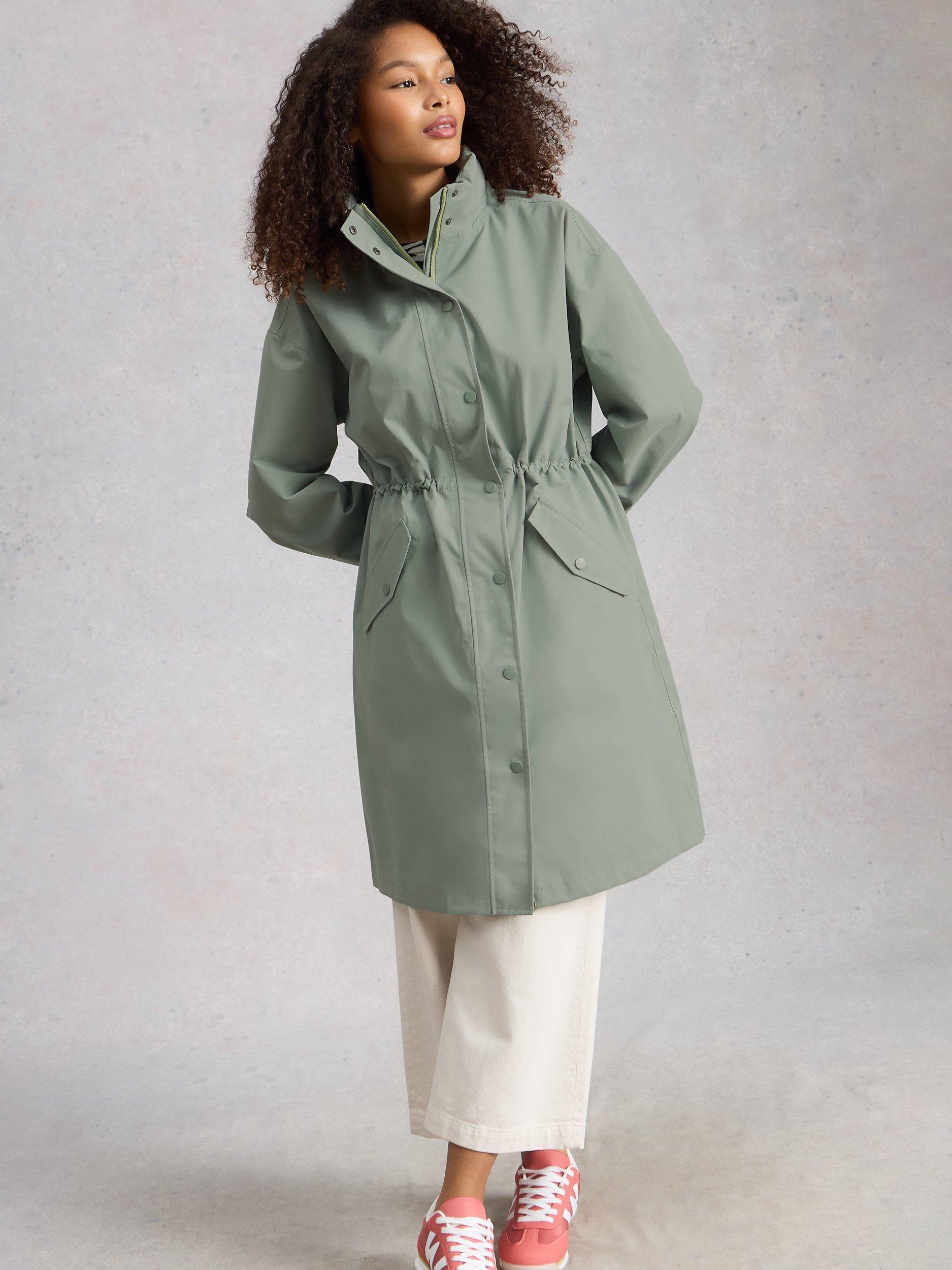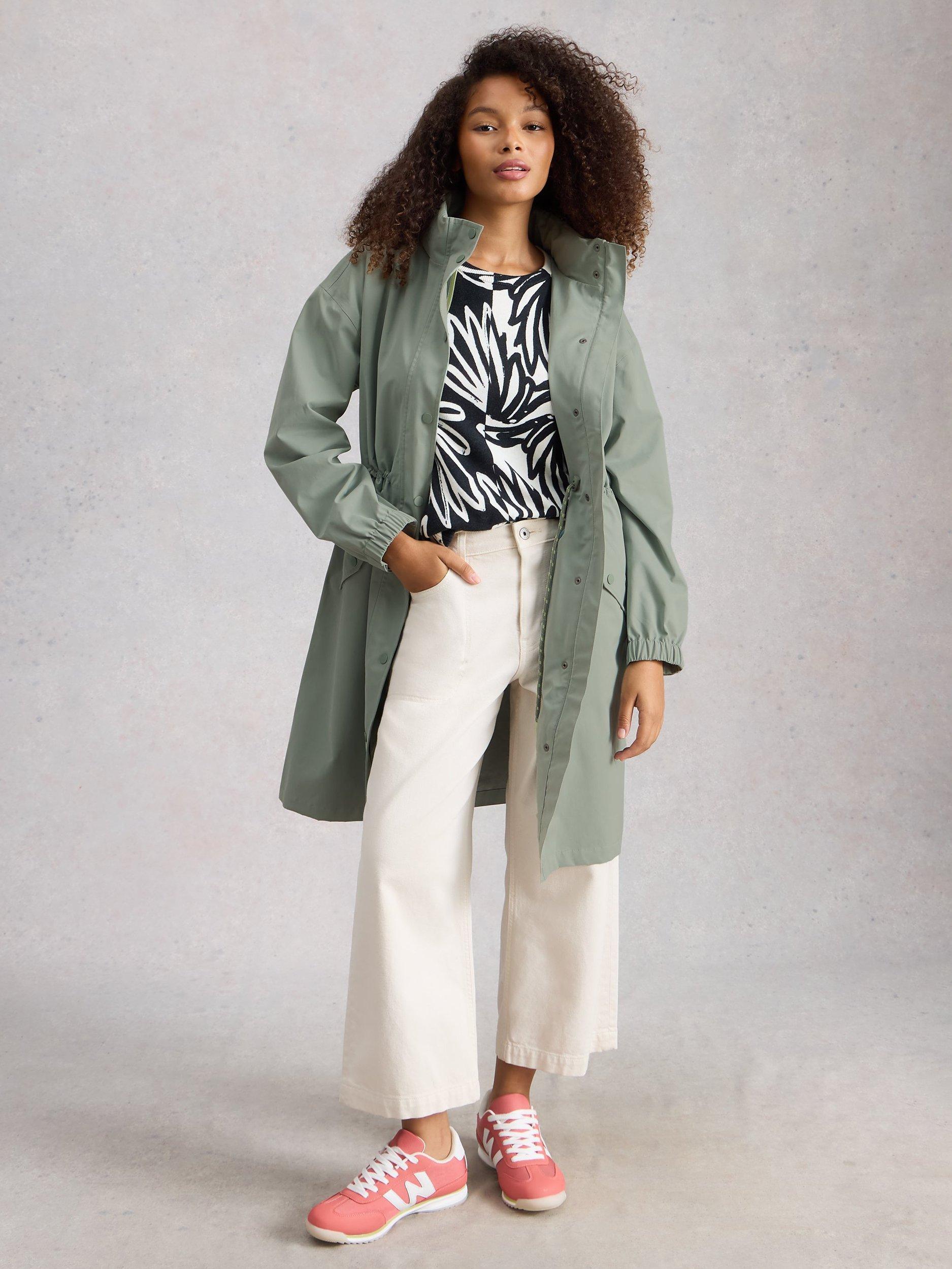 A longline waterproof raincoat from White Stuff, thoughtfully designed for busy days. Its regular fit, adjustable hood, and secure fastening help you face wet weather with ease, no matter your plans.