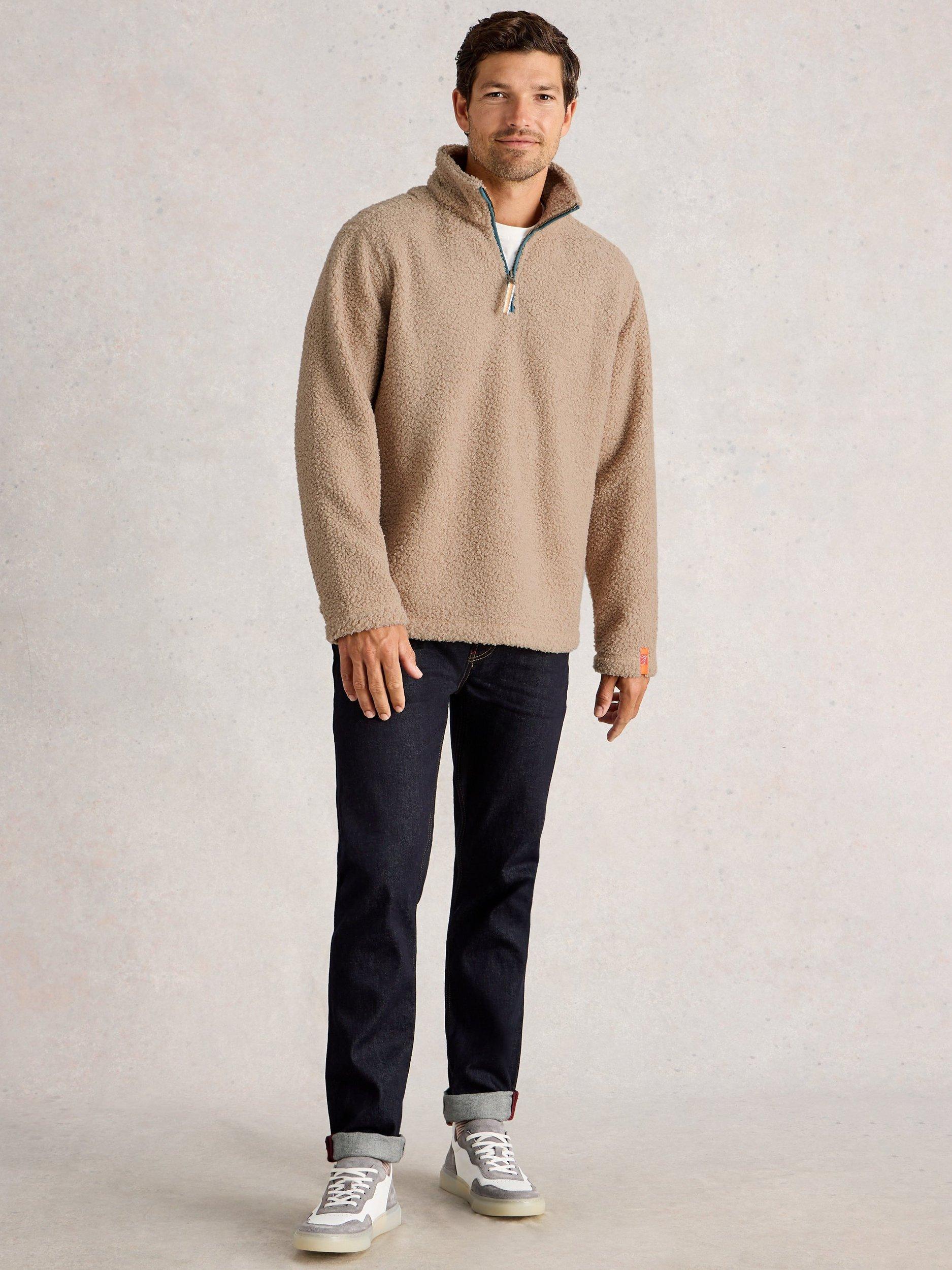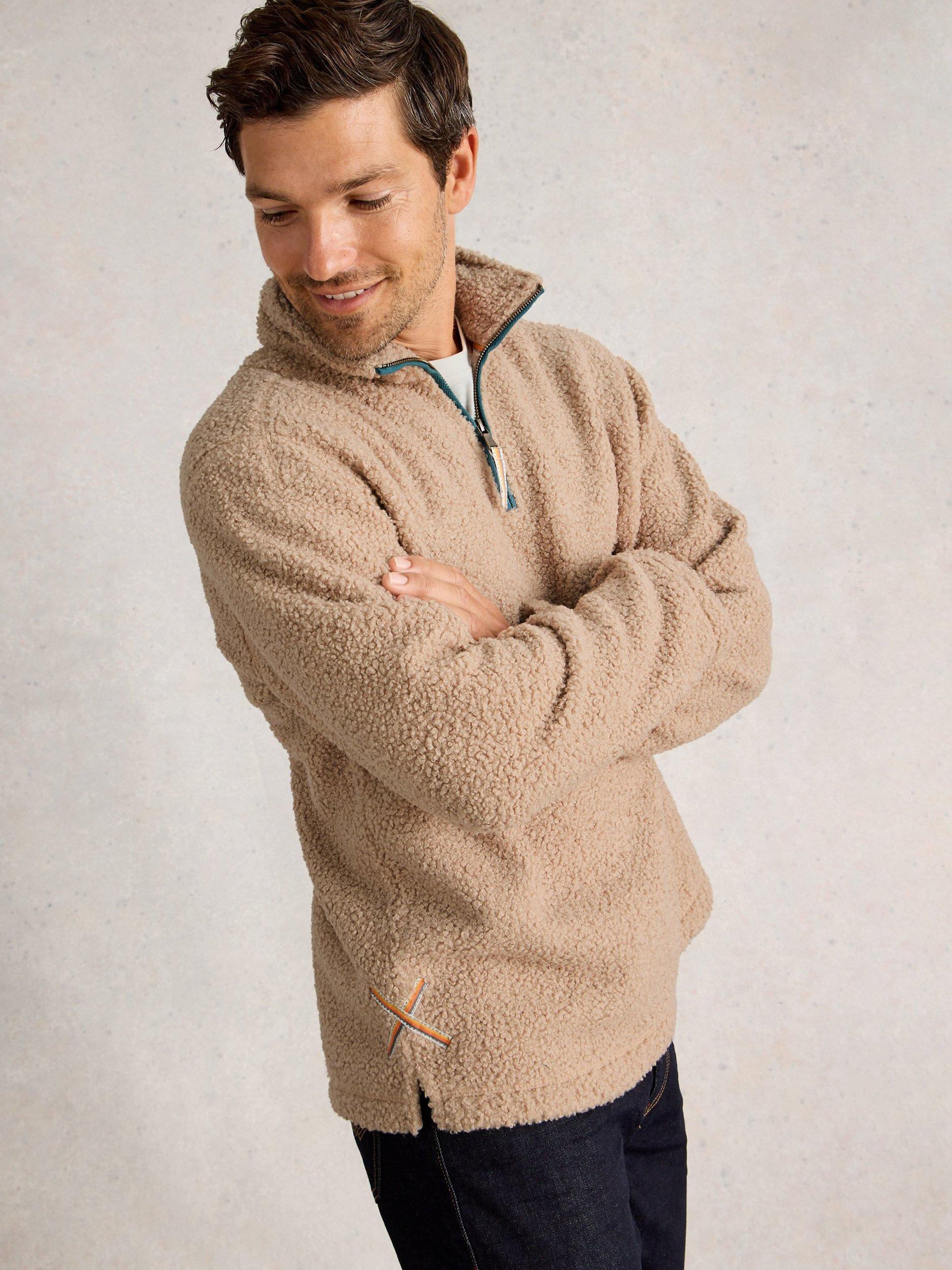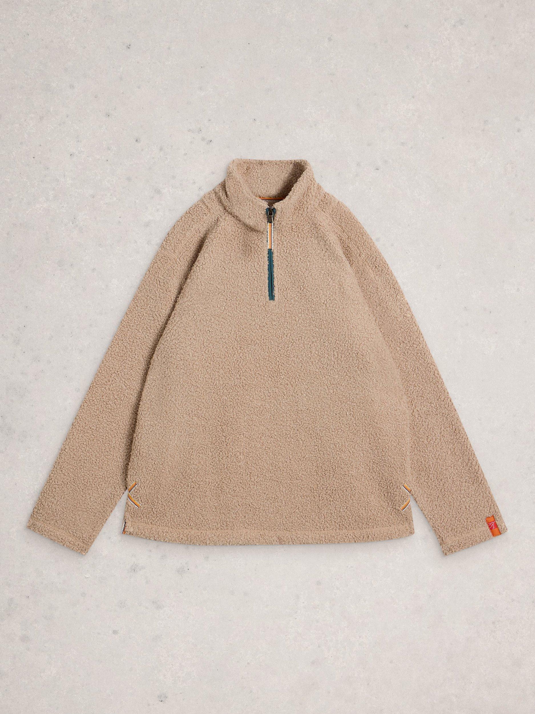 Cosy borg fabric jumper ideal for lounging or casual days. With handy pockets and half zip detail.