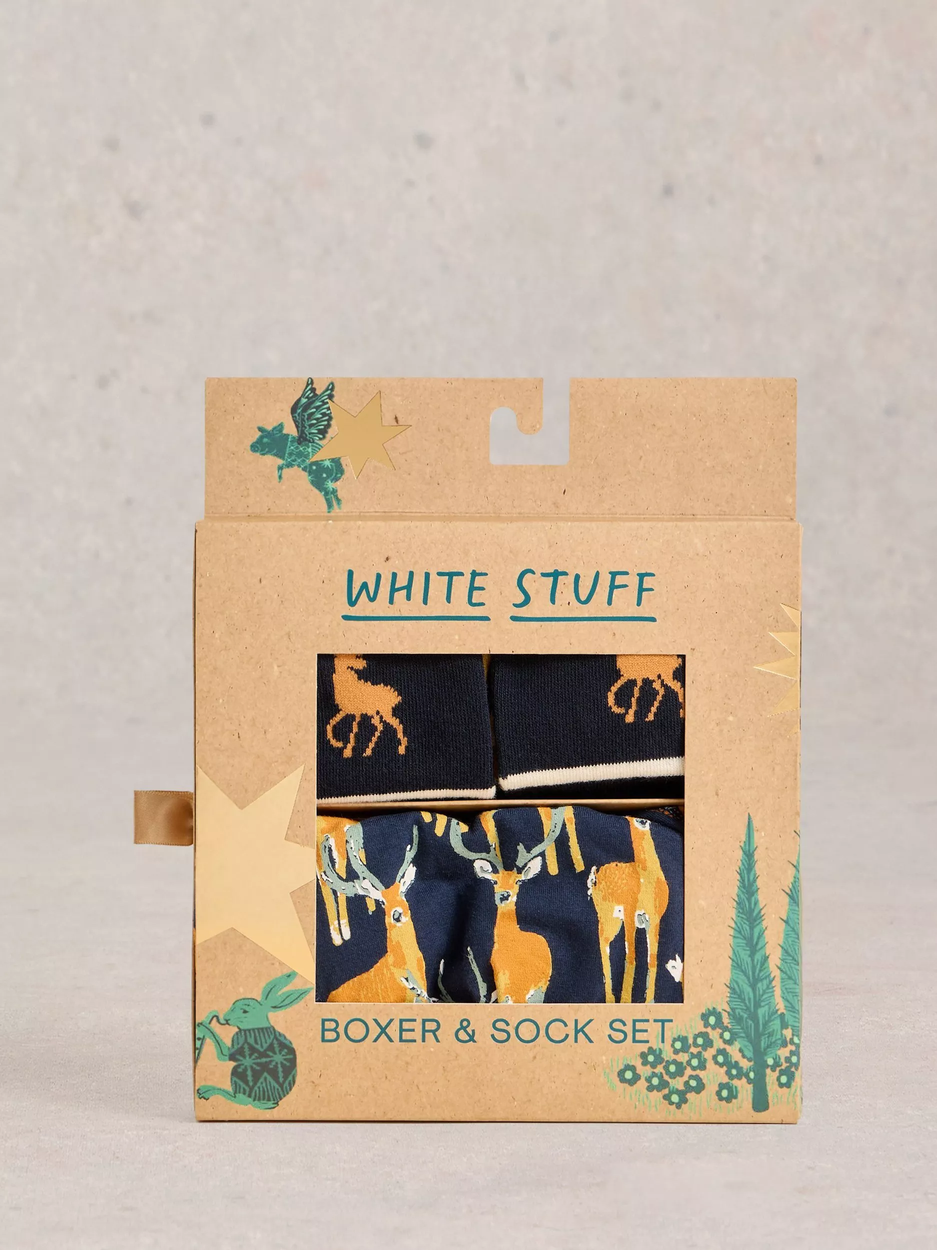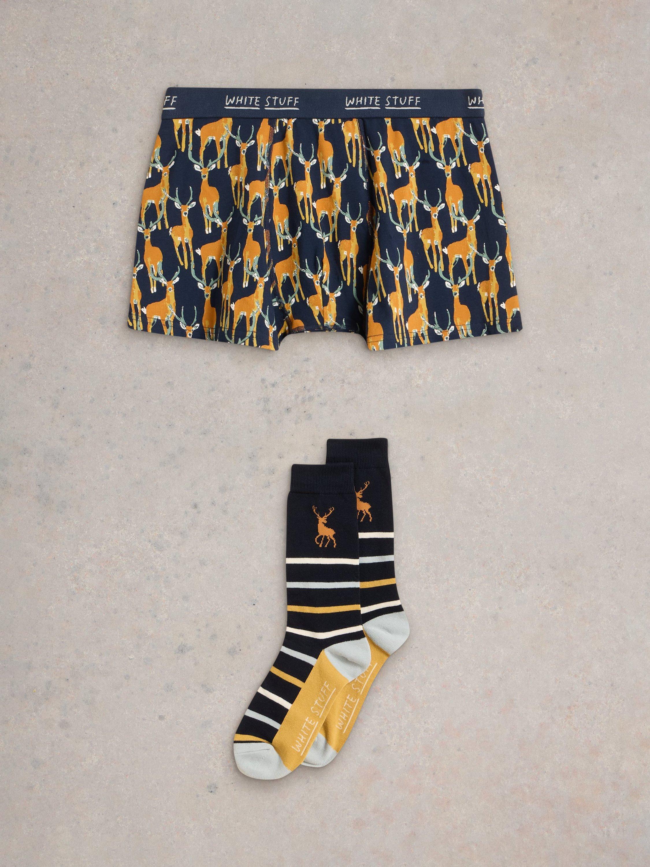 A boxer and sock set made from a smooth cotton blend, making them both super comfy and stretchy.