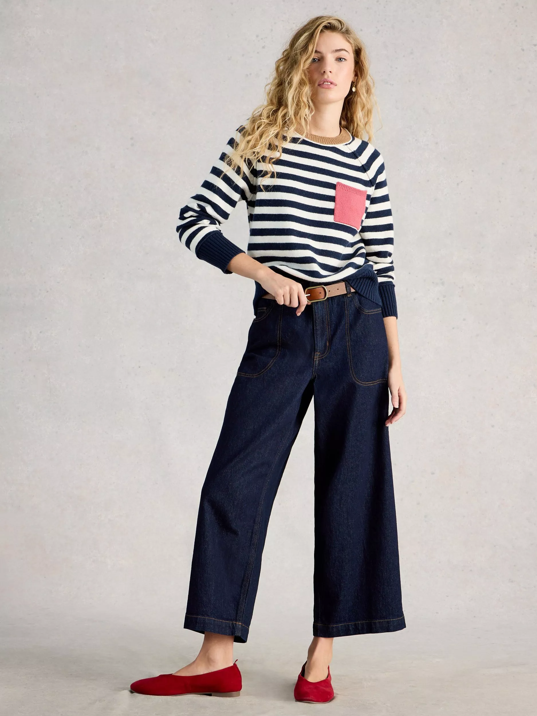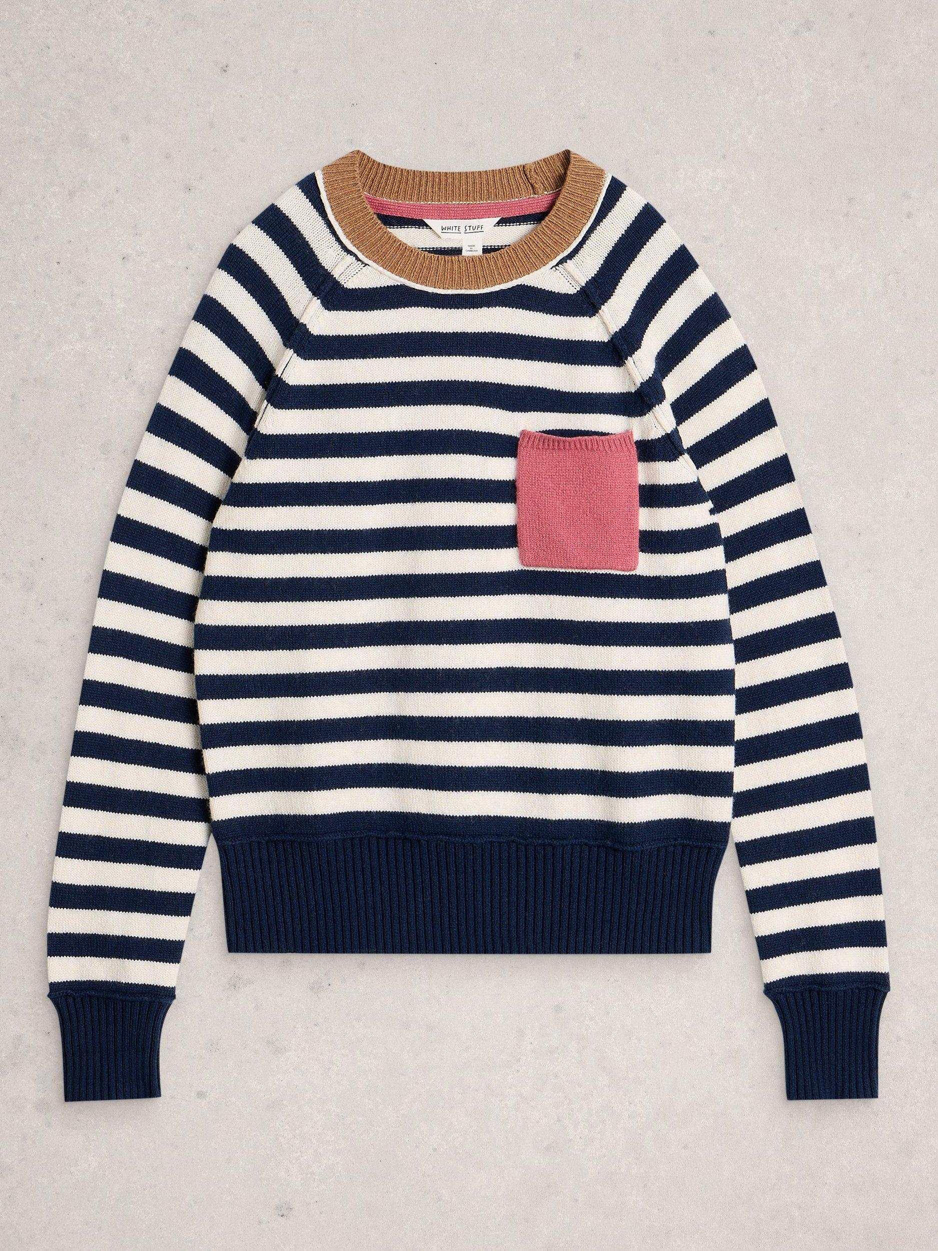 This striped sweatshirt keeps you warm and comfortable, while the round neck and long sleeves make it perfect for layering. Made from a soft wool blend, it gives you dependable style for busy days or relaxed evenings.