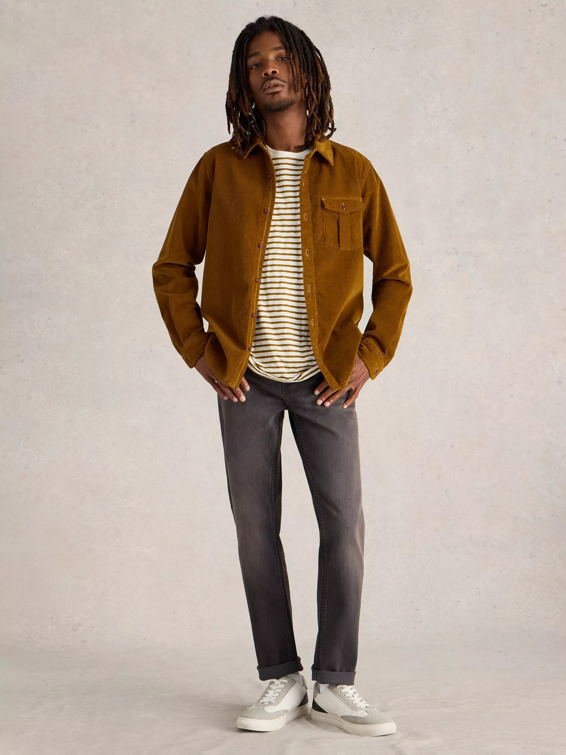 Made for off-duty days, consider the cuffs turned up and accenting with lace-up trainers.