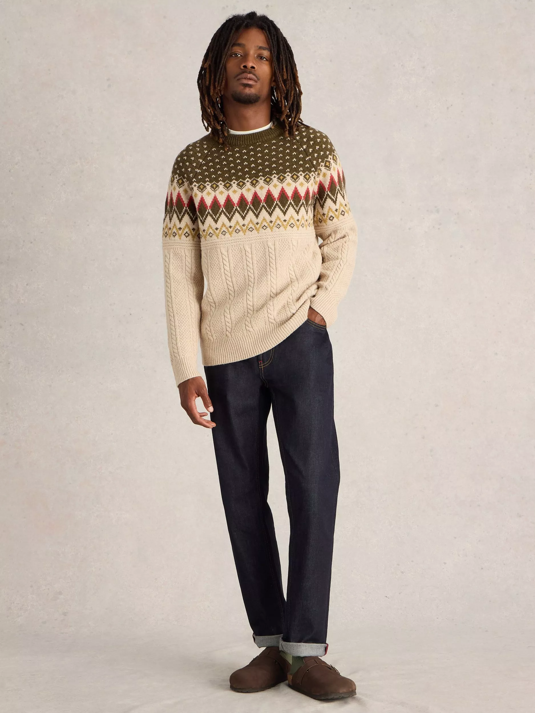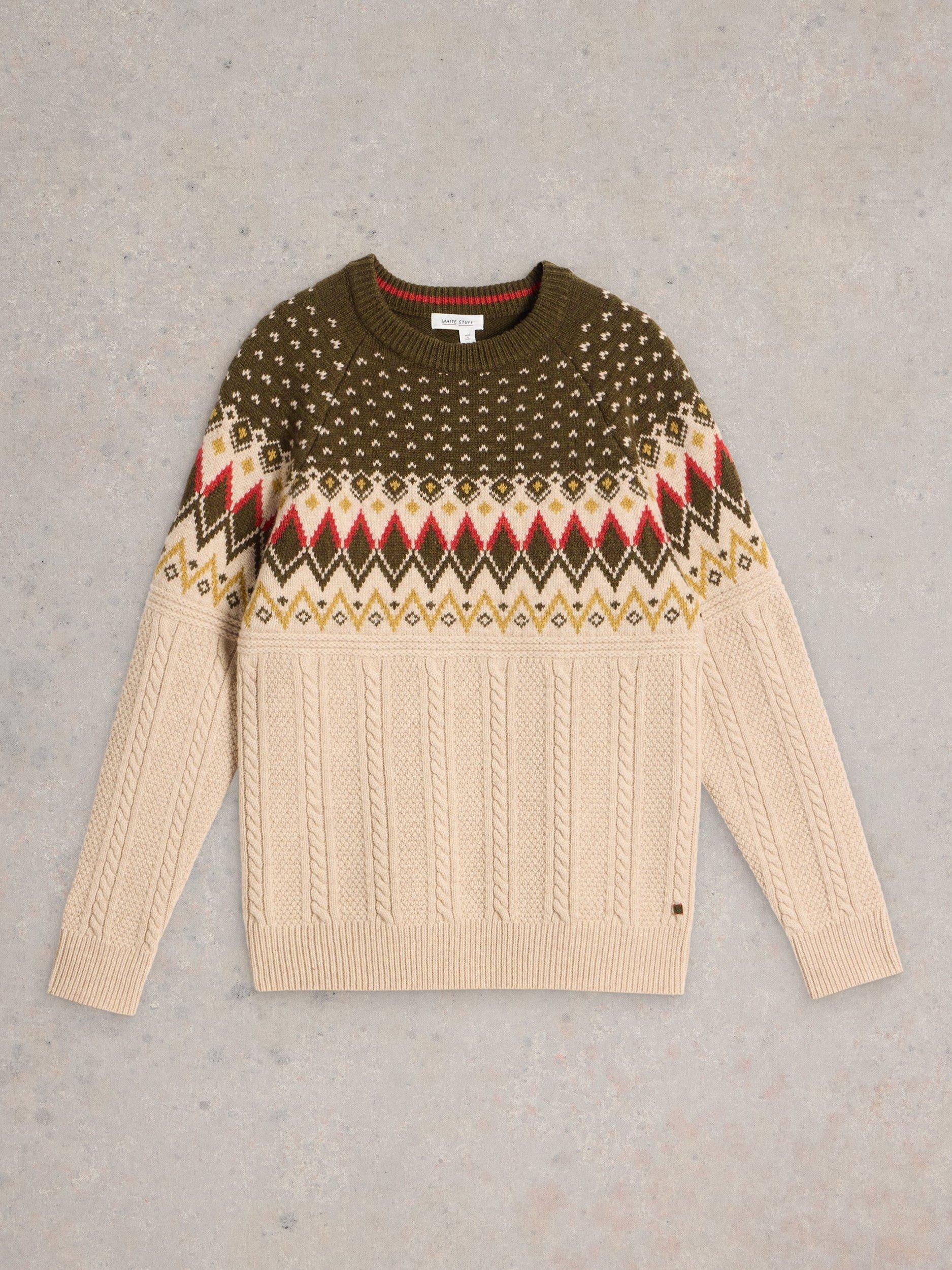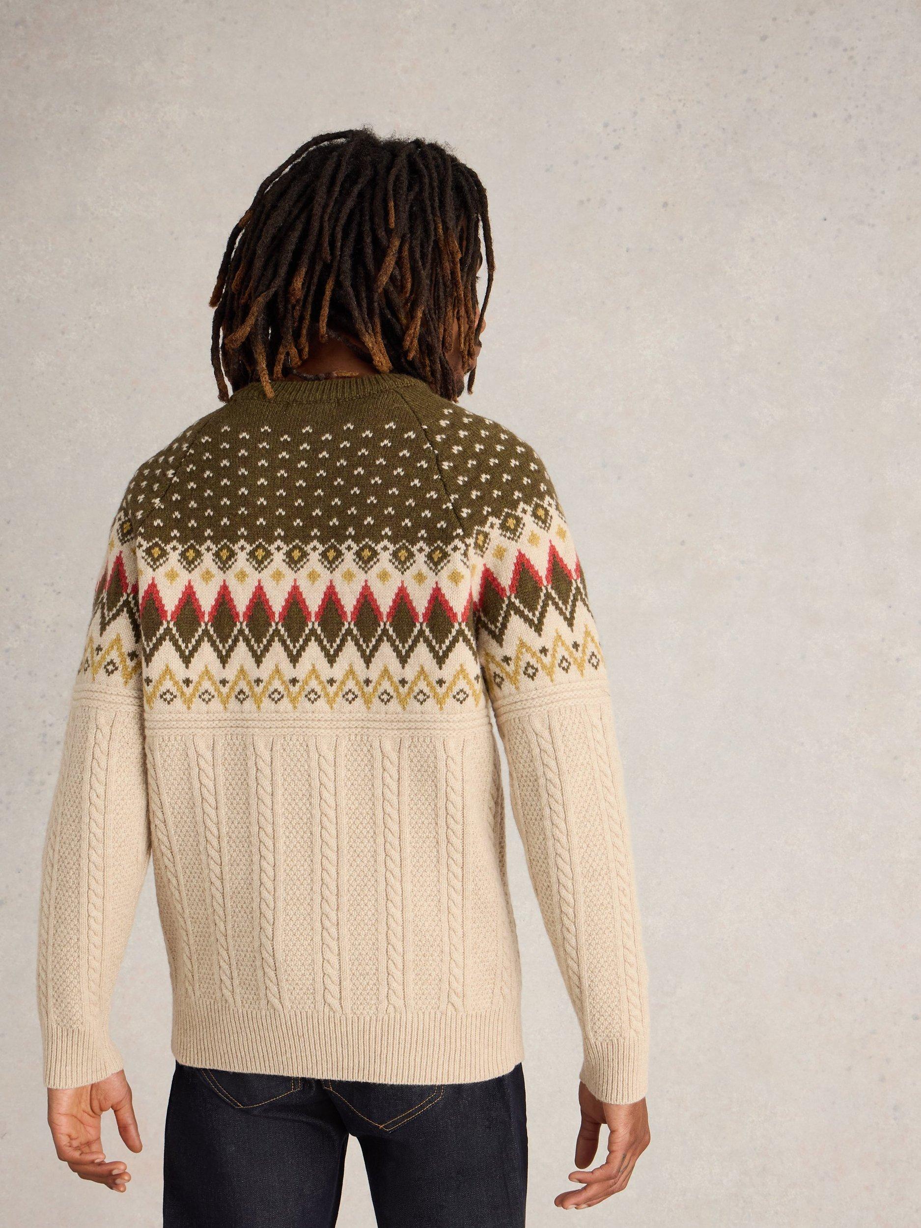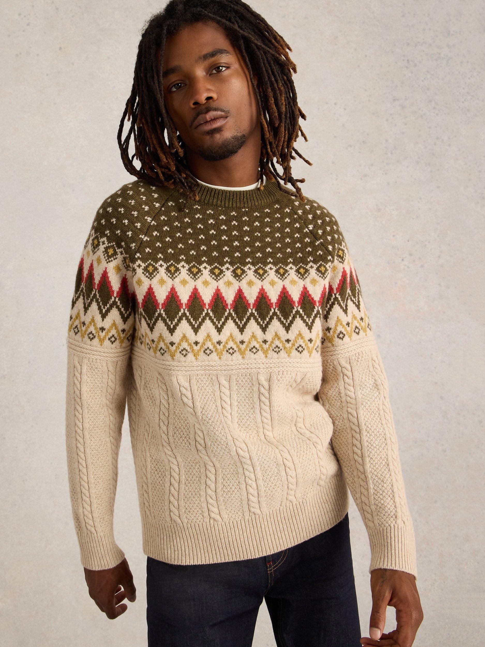 This crew neck fairisle patterened jumper is a festive hit and it's warm and comfortable for easy weekend wear.