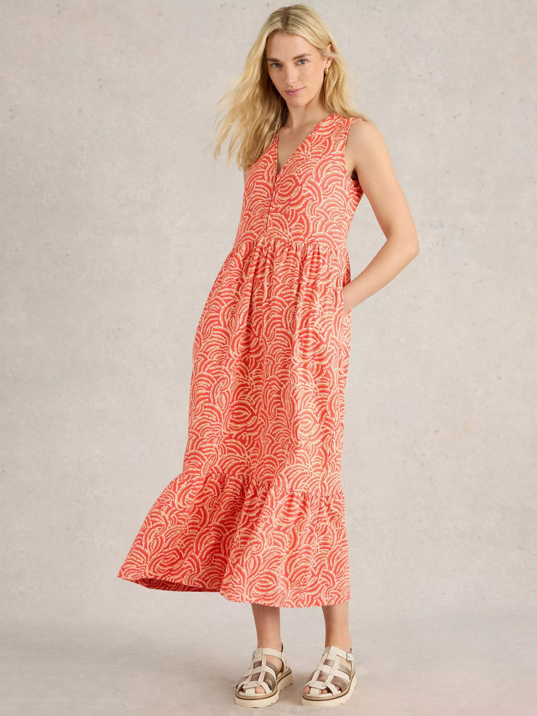 Designed in a fuss-free A-line style, this maxi dress from White Stuff is made from a cotton fabric blend. With a fuss-free but smart v-neckline, this style is cloaked with abstract motifs.